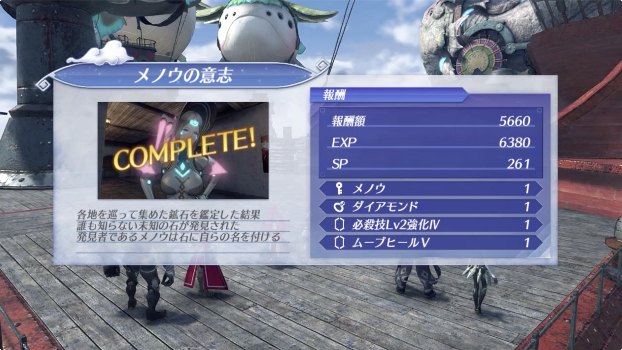 보상 아이템 : 메노우(メノウ), 다이아몬드(ダイアモンド), 필살기 Lv2 강화IV(必殺技Lv2強化IV), 무브 힐V(ムーブヒールV)