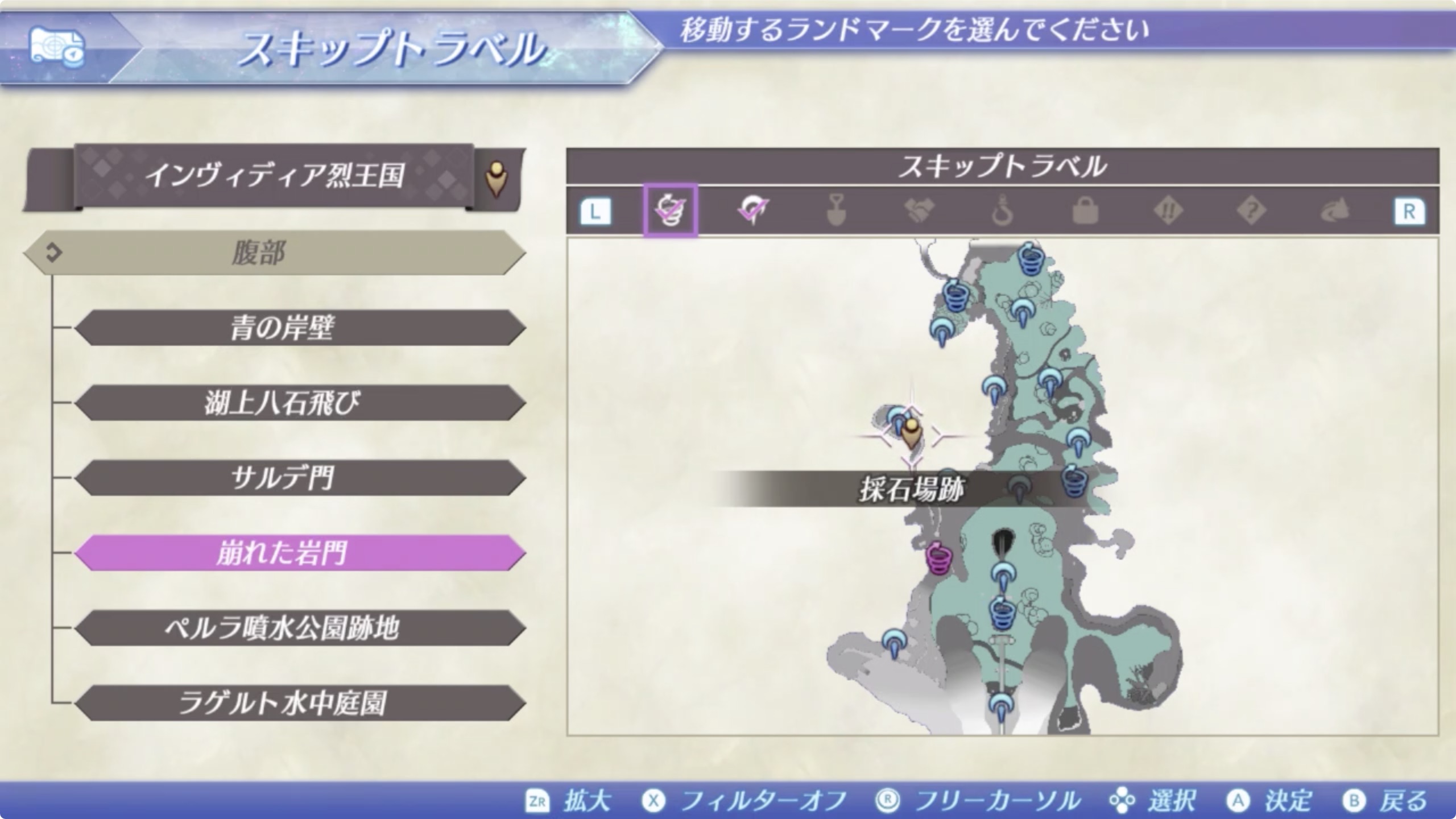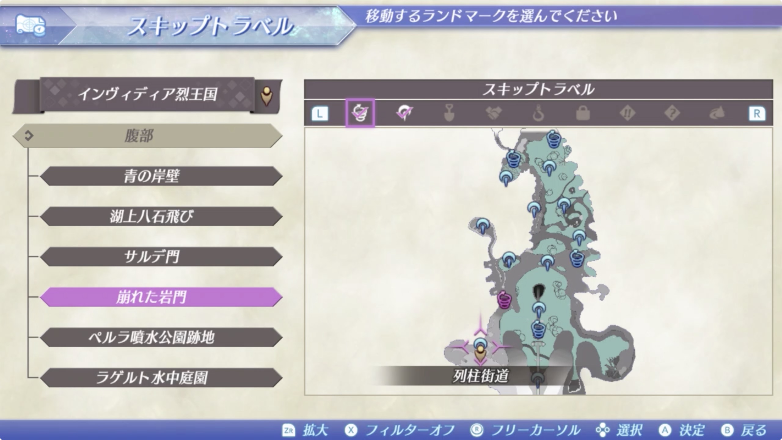 ③ 인비디아(インヴィディア) > 복부(腹部) > 무너진 바위 문 (崩れた岩門) 에서 남쪽길을 따라 이동.