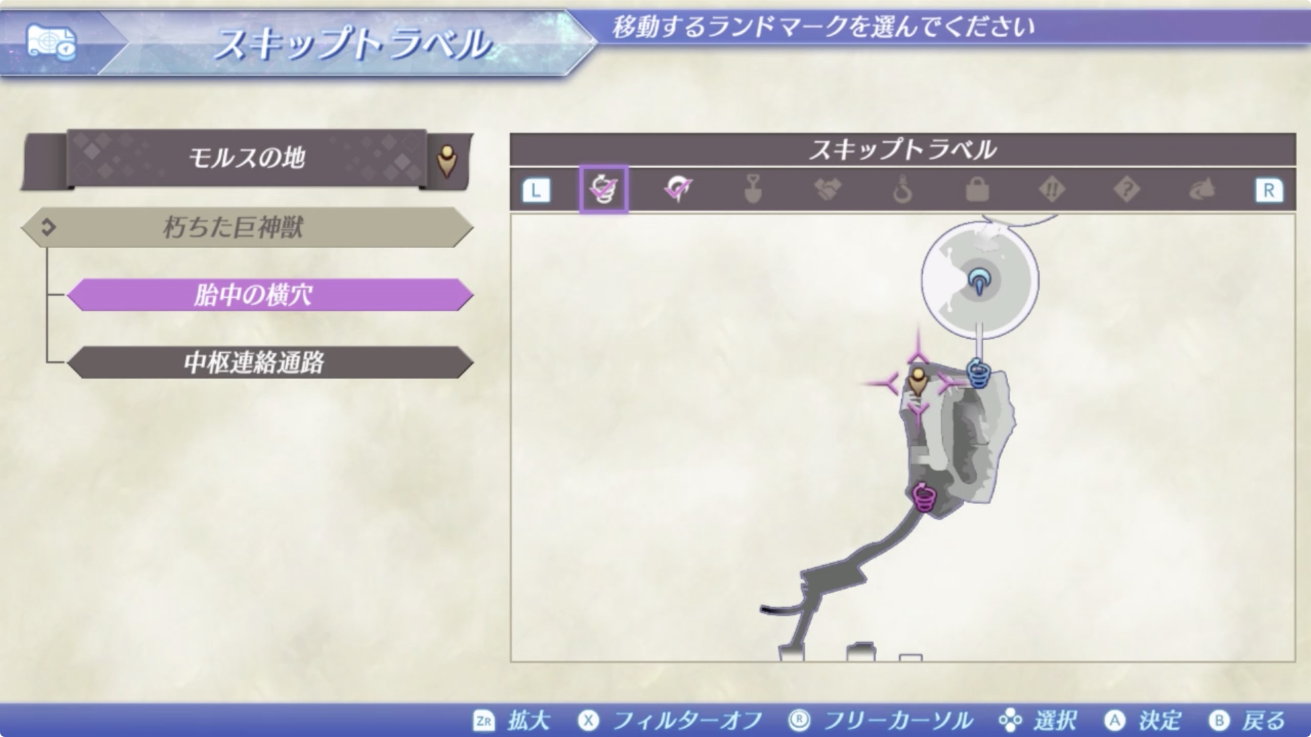 모루스의땅(モルスの地) > 썩어버린 거신수(朽ちた巨神獣) > 태내의횡혈(胎中の横穴)로 이동한 후 북쪽으로 이동하면 이벤트 발생.