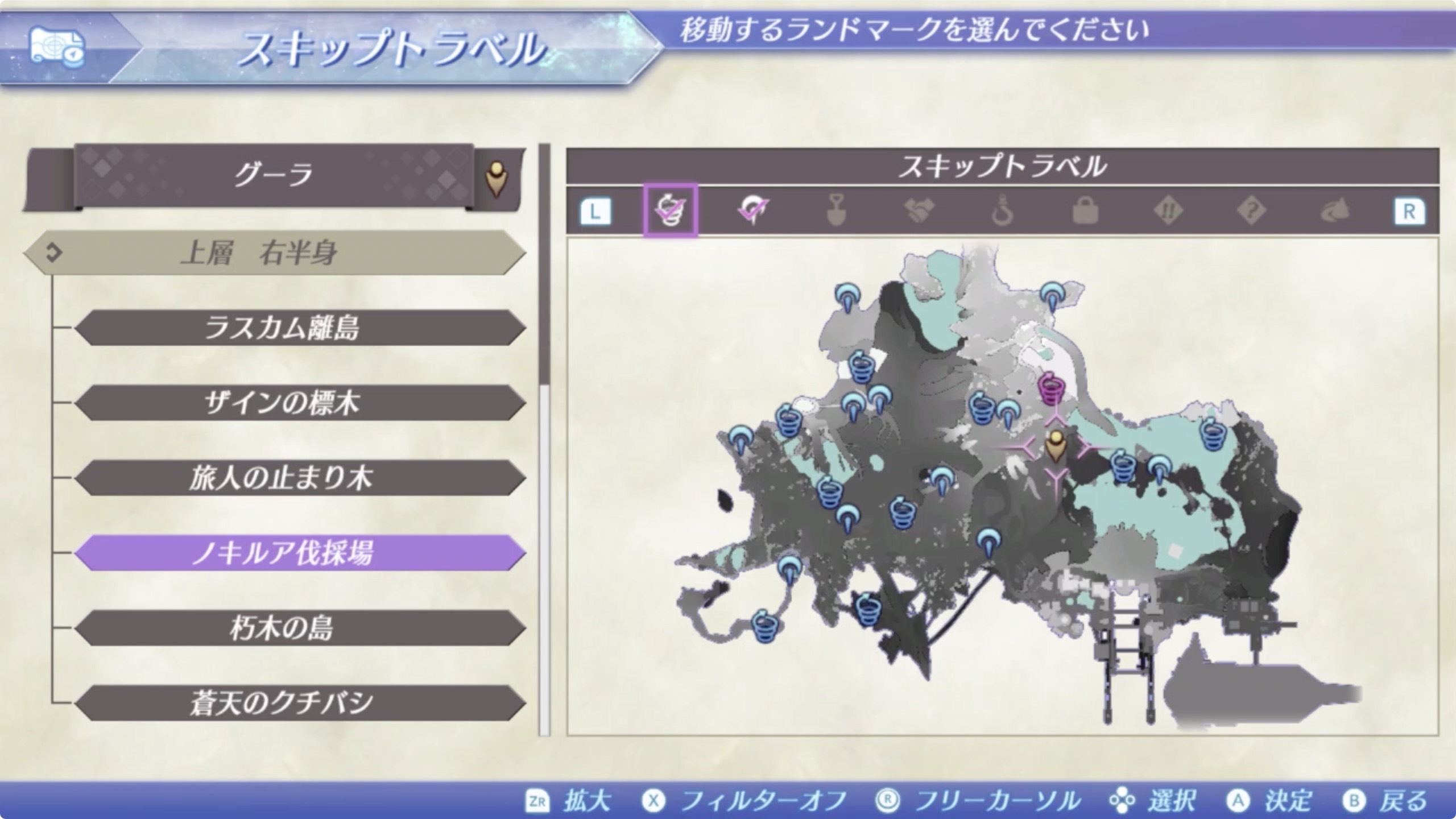② 구우라(グーラ) > 상층 우반신(上層 右半身) > 노키루아 벌목장(ノキルア伐採場)에서 남쪽. 언덕아래로 이동
