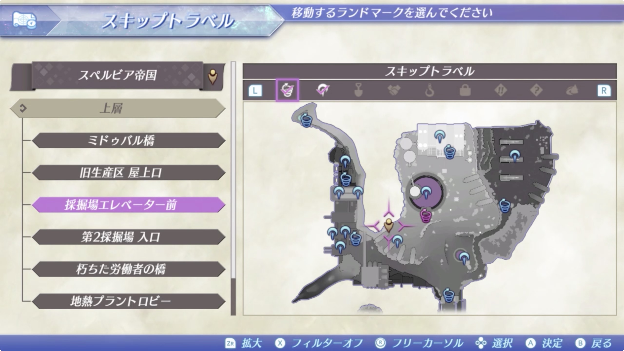 ④ 스펠비아(スペルビア) > 상층 > (上層) > 채굴장 엘리베이터 앞(採掘場エレベーター前)에서 남서쪽