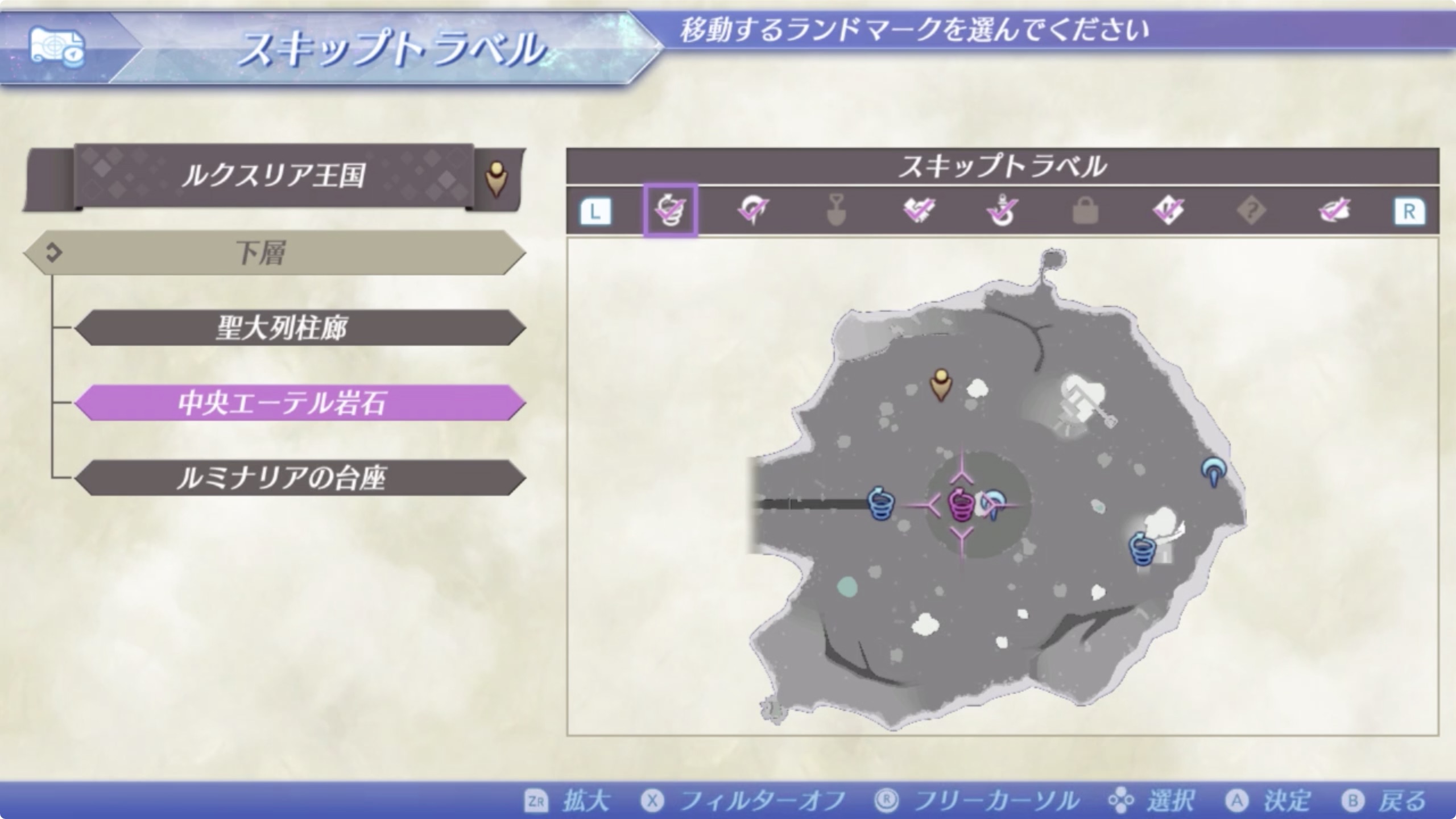 *높이가 있어 그대로 내려가기는 힘드니 스킵 트래블을 이용해 룩스리아 하층으로 이동하자.