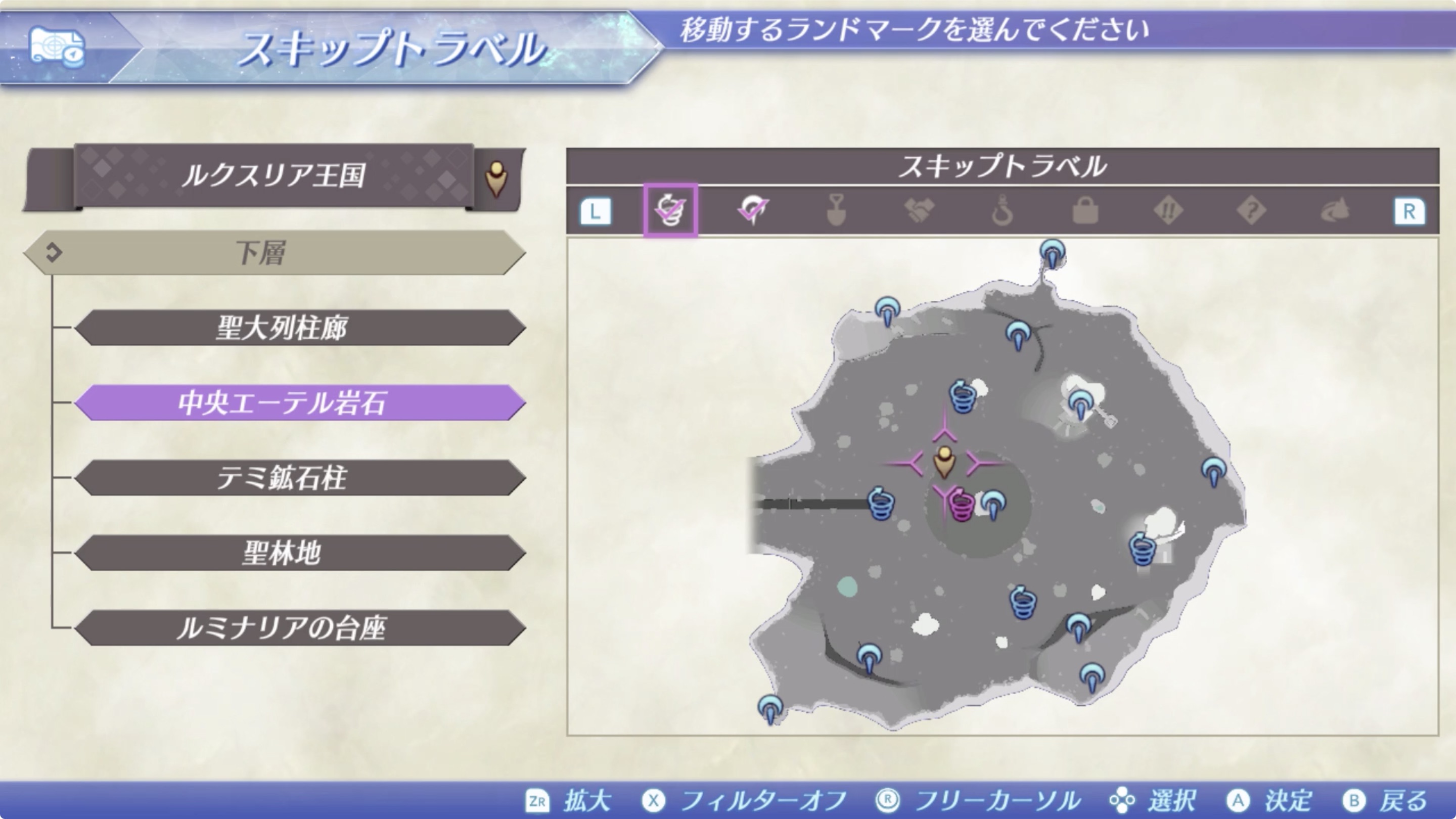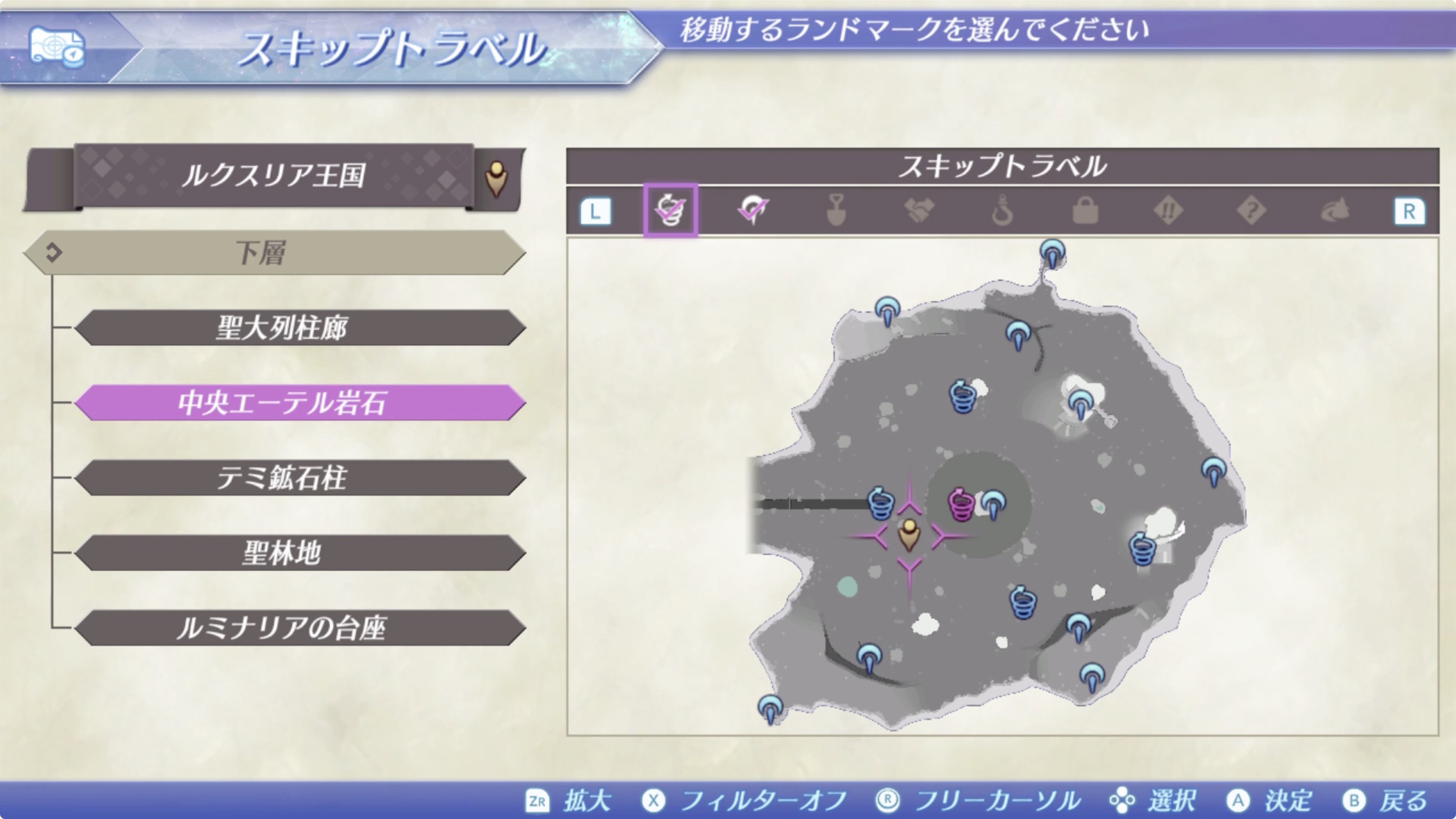 룩스리아 > 하층(下層) > 중앙 에텔 암석(中央エーテル岩石)의 조금 북쪽