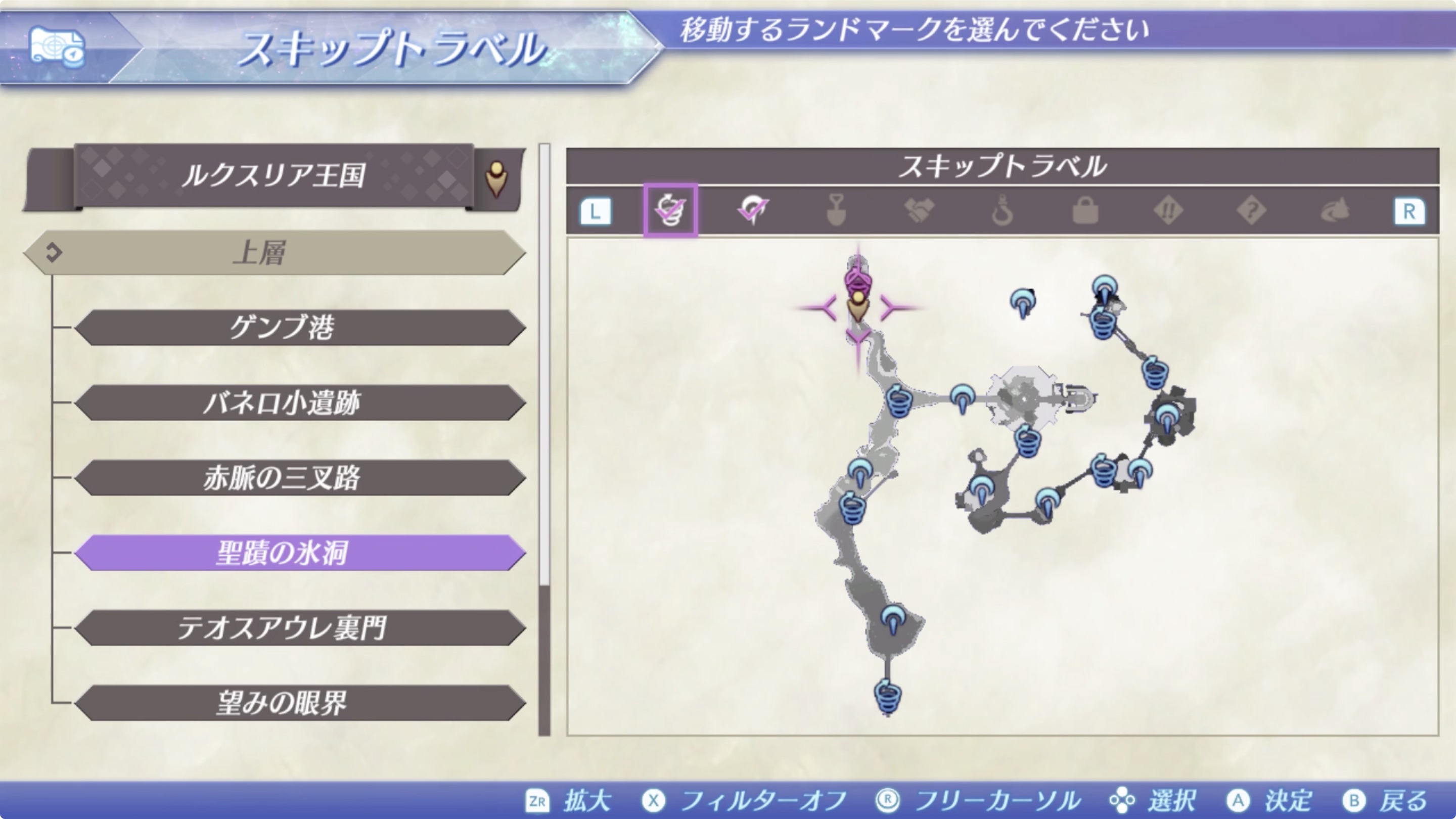피핏트의 소굴은 룩스리아 하층의 남서쪽 끝에 위치하고있는데, 이곳으로 가기 위해선, 성대열주랑(聖大列柱廊)의 남서쪽에 위치한 연못 (*아래 지도참고)을 통해 이동 할 수 있습니다. *수속성의힘Lv5(水属性の力Lv5), 인내력Lv3(忍耐力Lv3) 필요.