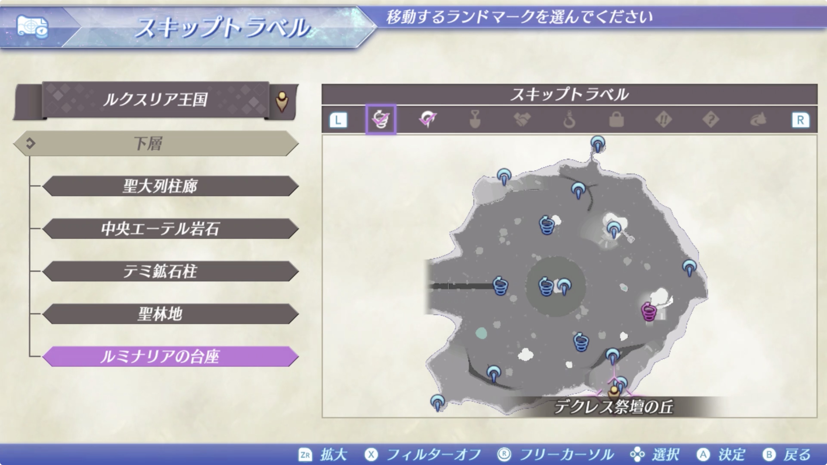 룩스리아 > 하층(下層)의 남동쪽 끝. 데크레스 제단의 언덕(デクレス祭壇の丘)