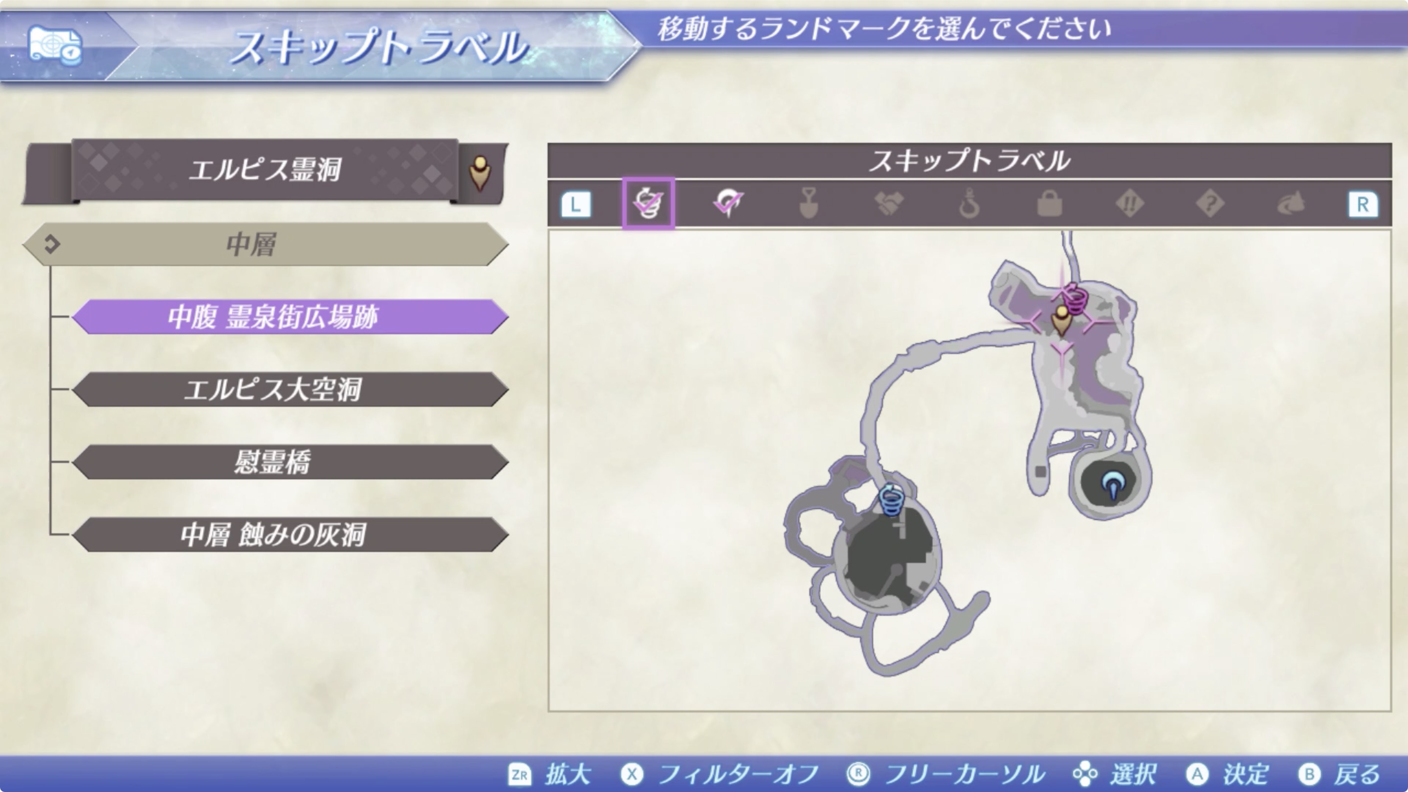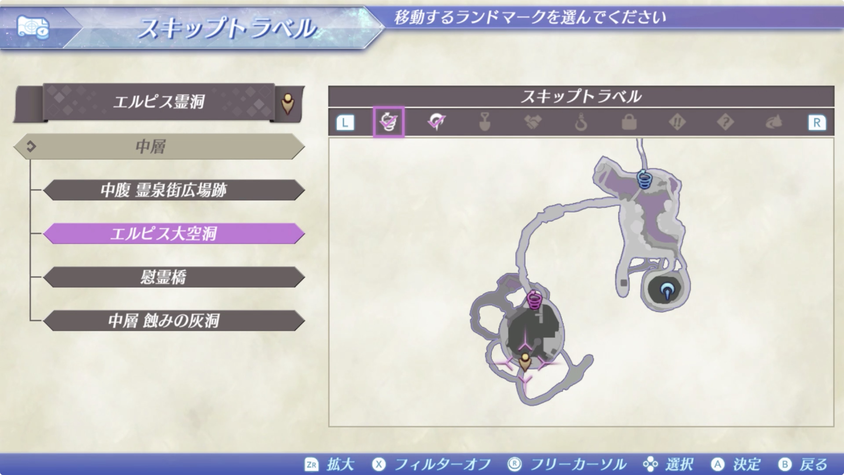 중층(中層) > 엘피스 대공동(エルピス大空洞)에서 길을 따라 아래로 이동.