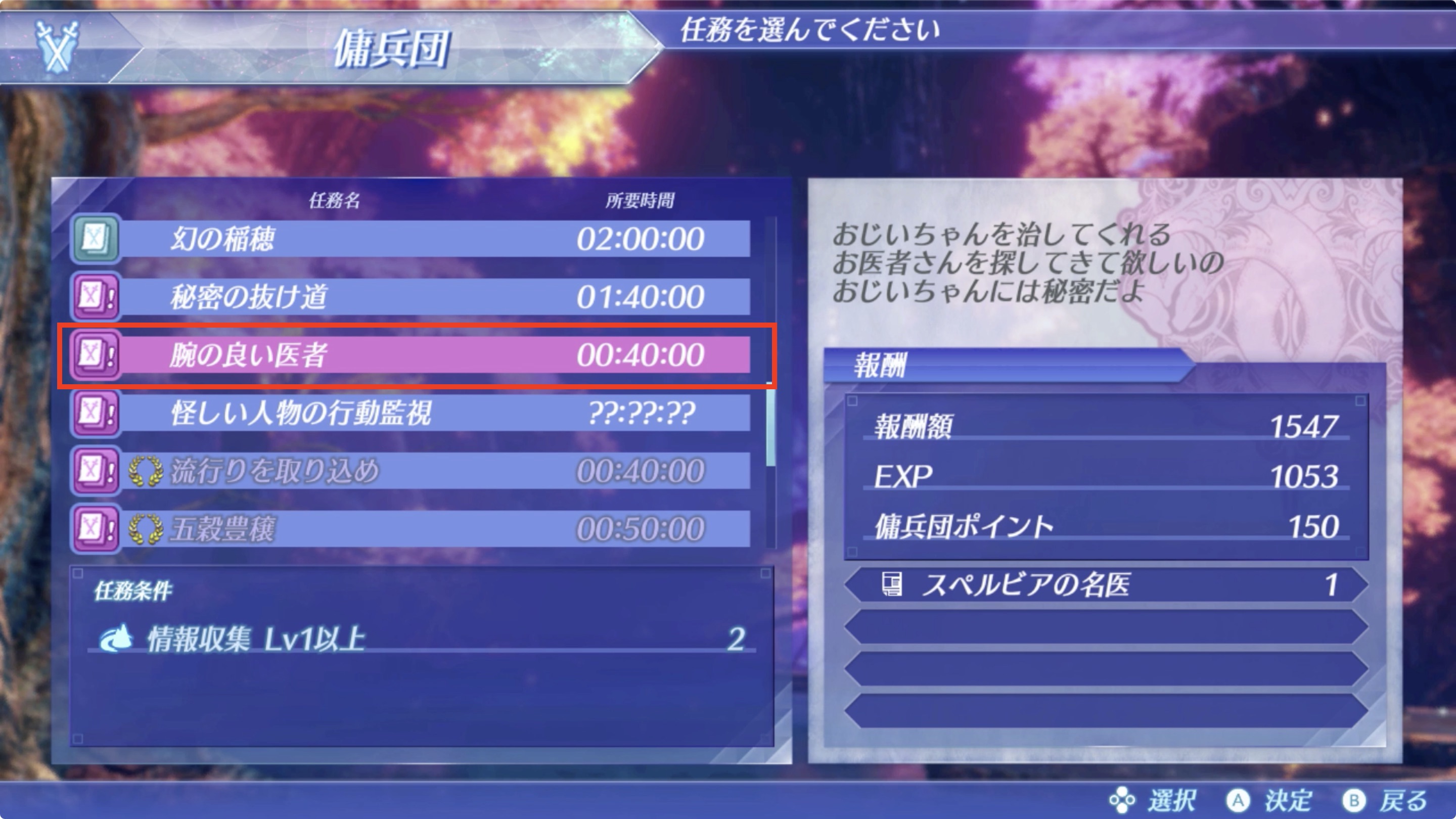용병단임무「솜씨 좋은 의사(腕の良い医者)」를 완료하자.
