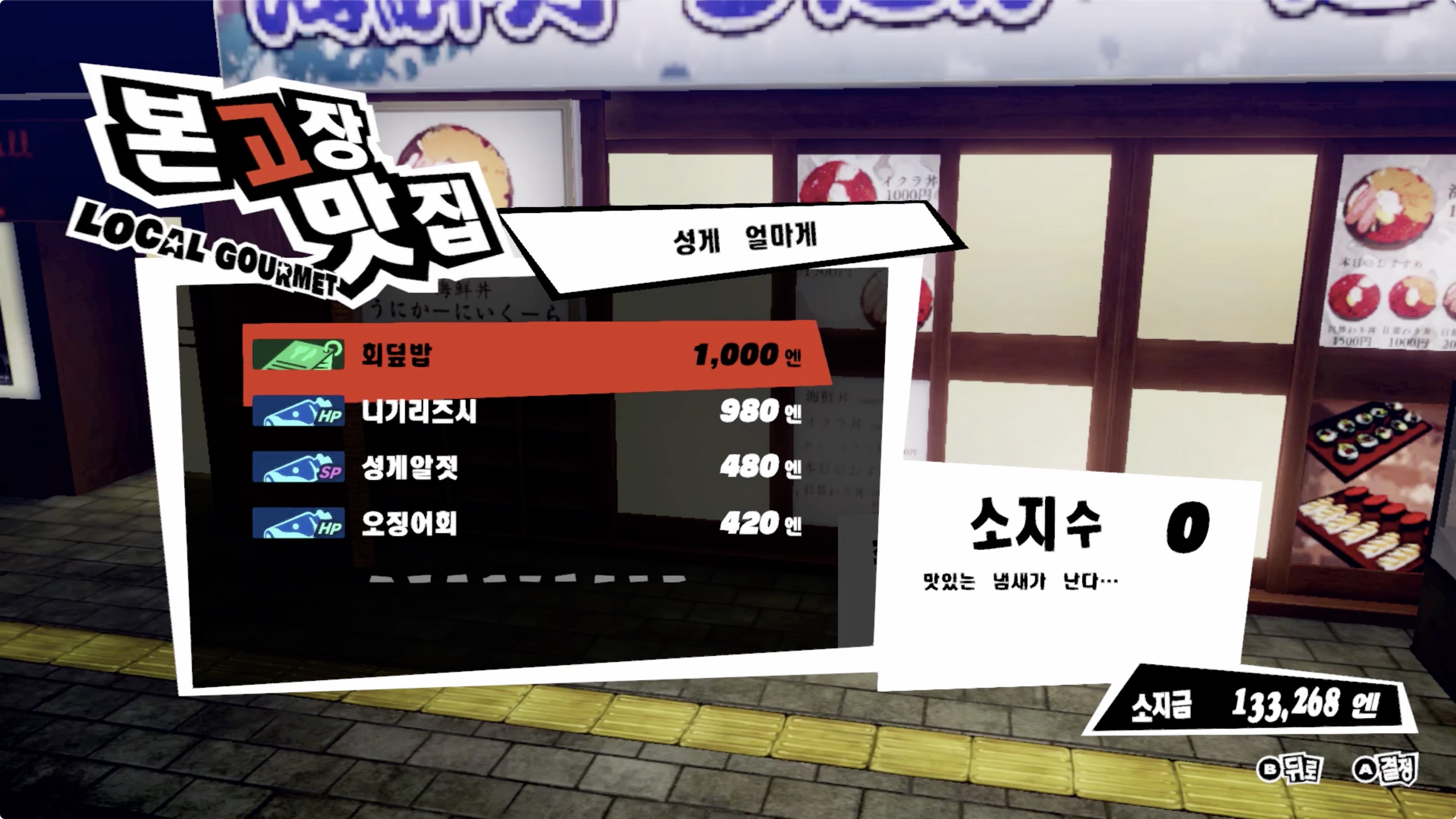 ✔︎ 유스케와 대화하면 '상남자 해물 주스 x1' 획득
