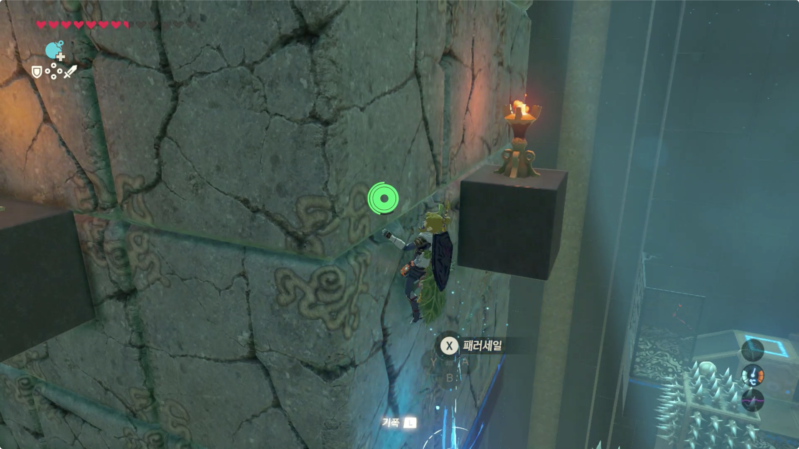 아래쪽에 돌로 막혀있는곳을 파괴하면 상승기류가 나타나니 이걸 타고 위로 올라가자.