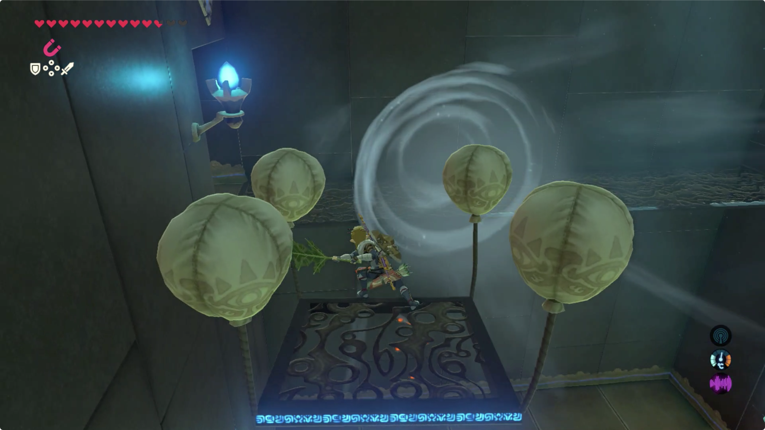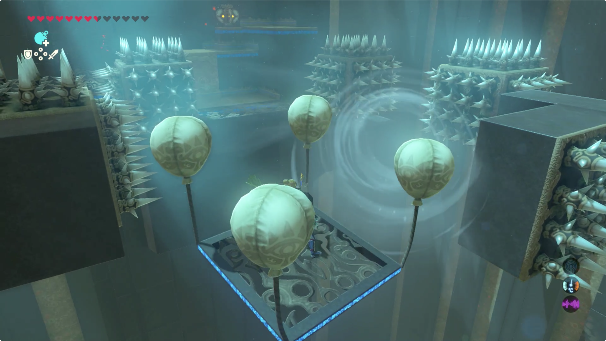 이것 위에 올라탄 후 코르그의 부채로 바람을 일으켜 뒤쪽에 상자를 획득하고, 앞으로 진행하자.