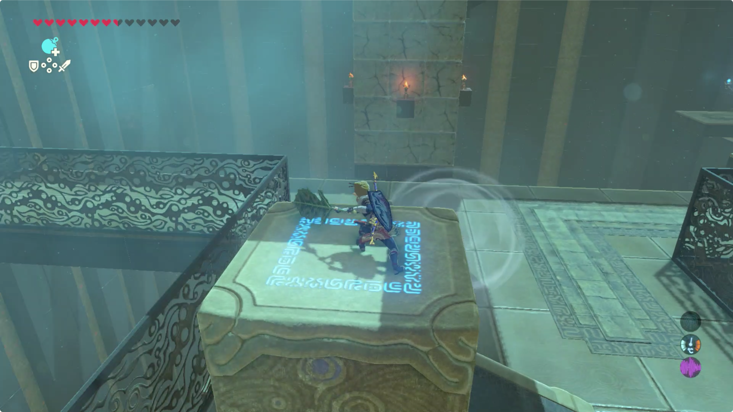 바람을 일으키는 코르그의 부채가 있는데 이것을 이용해서 사당을 진행 해야 한다.