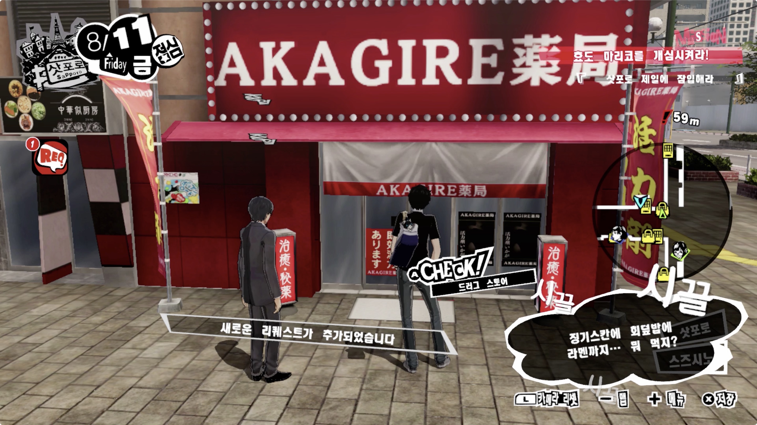 ① 스즈시노의 빨간 간판 가게(서쪽의 드러그 스토어)로 가서 조사를 하자