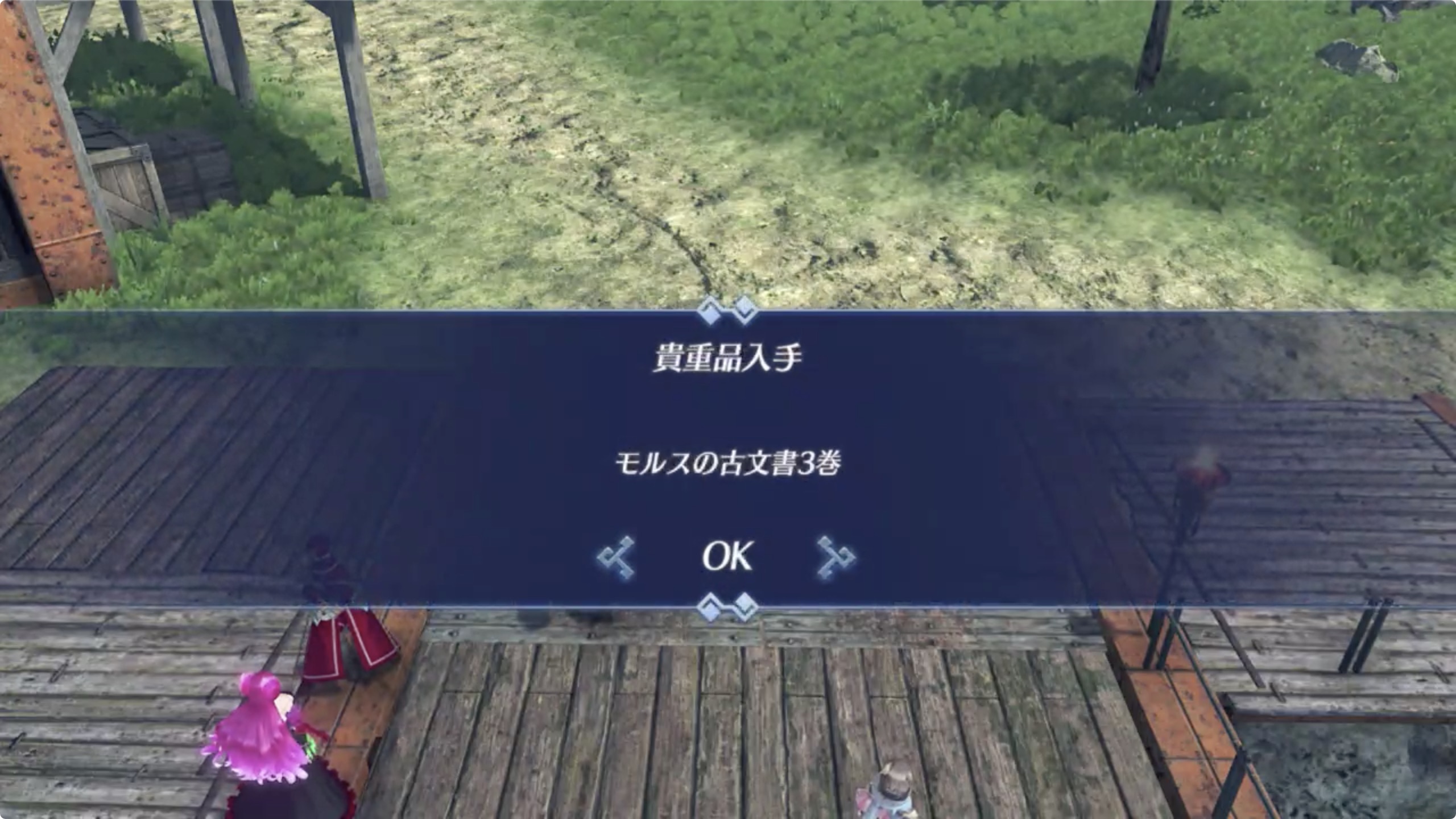 • 모루스의 고문서 2권(モルスの古文書2巻)을 구입한 후 , 용병단 임무 「모루스의 고문서 2권의 해독」 (モルスの古文書2巻の解読)을 완료한다.