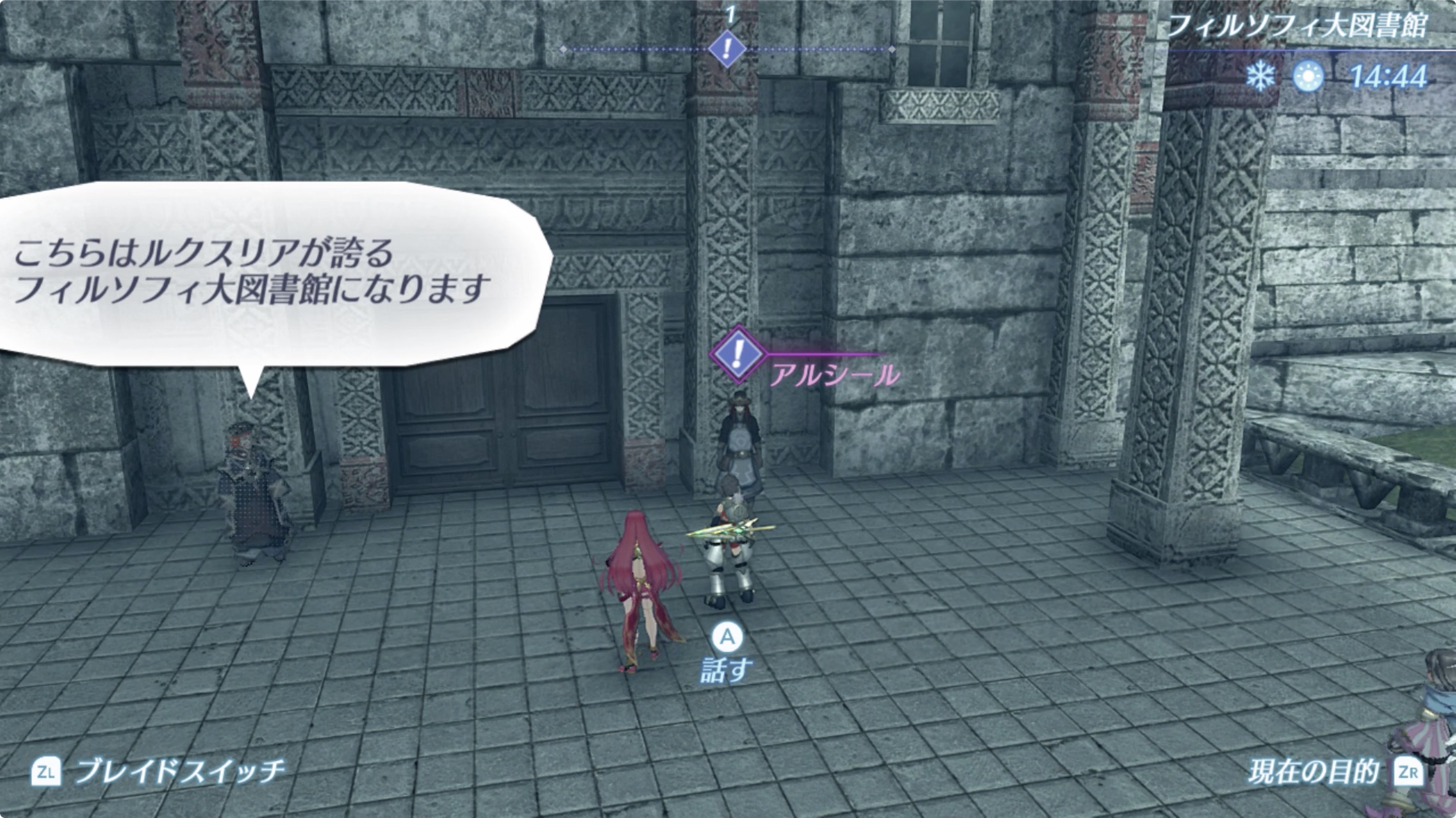 03-4 룩스리아(ルクスリア)・필소피대도서관(フィルソフィ大図書館)앞에 있는 아르실(アルシール)에게서 패스워드의 정보를 입수하자.