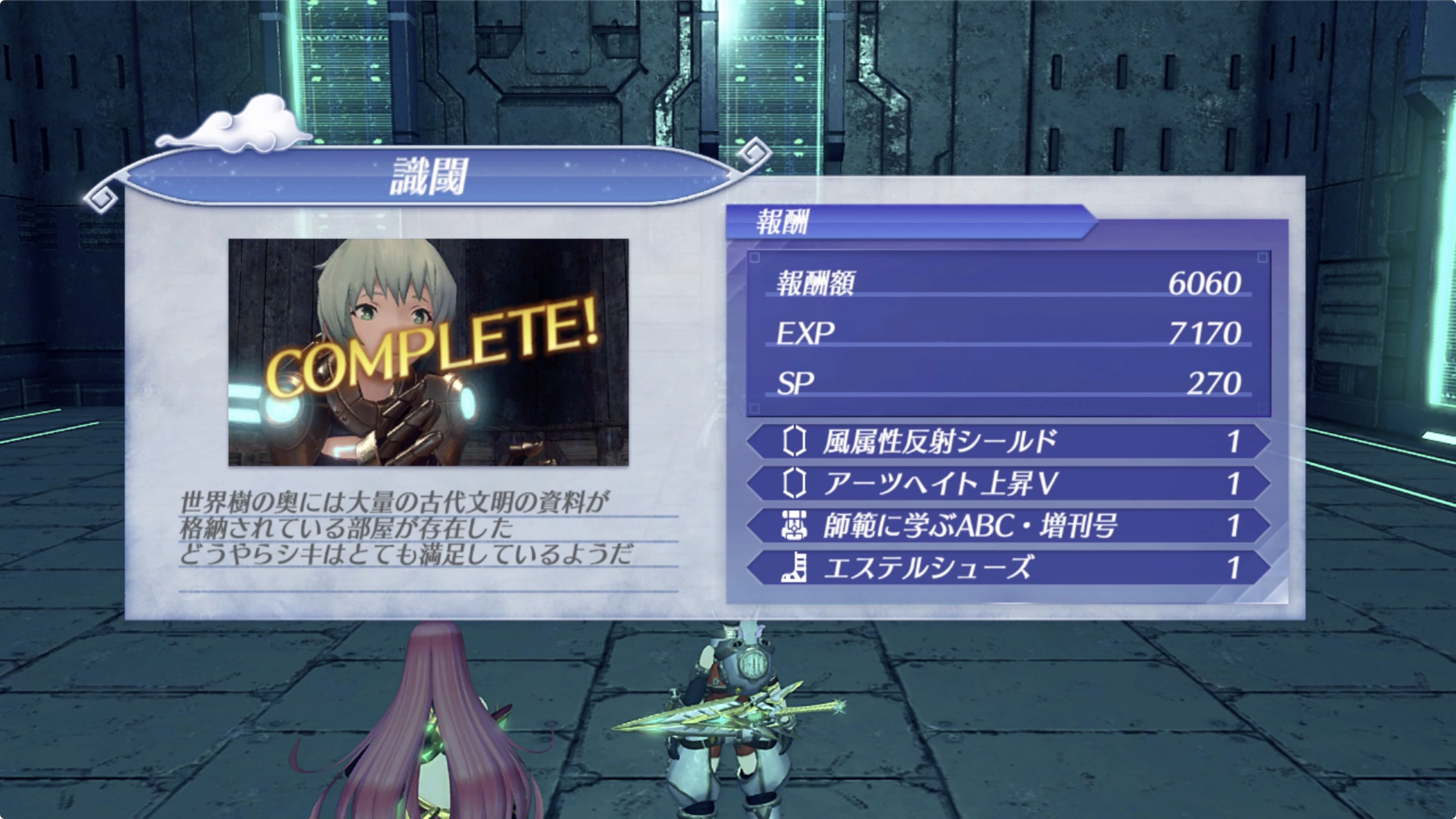 보상 아이템 : 풍속성 반사 실드(風属性反射シールド), 아츠 헤이트 상승V(アーツヘイト上昇V), 사범에게 배우는 증간호(ABC 師範に学ぶABC・増刊号), 에스텔 슈즈(エステルシューズ)