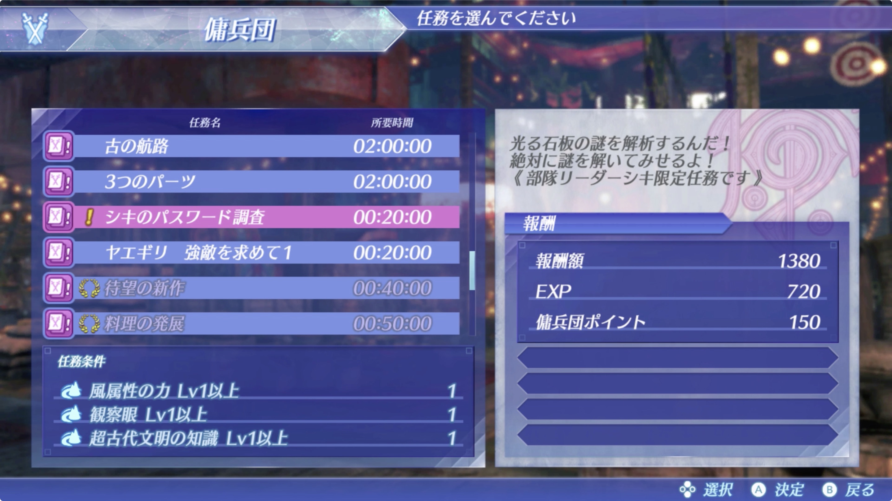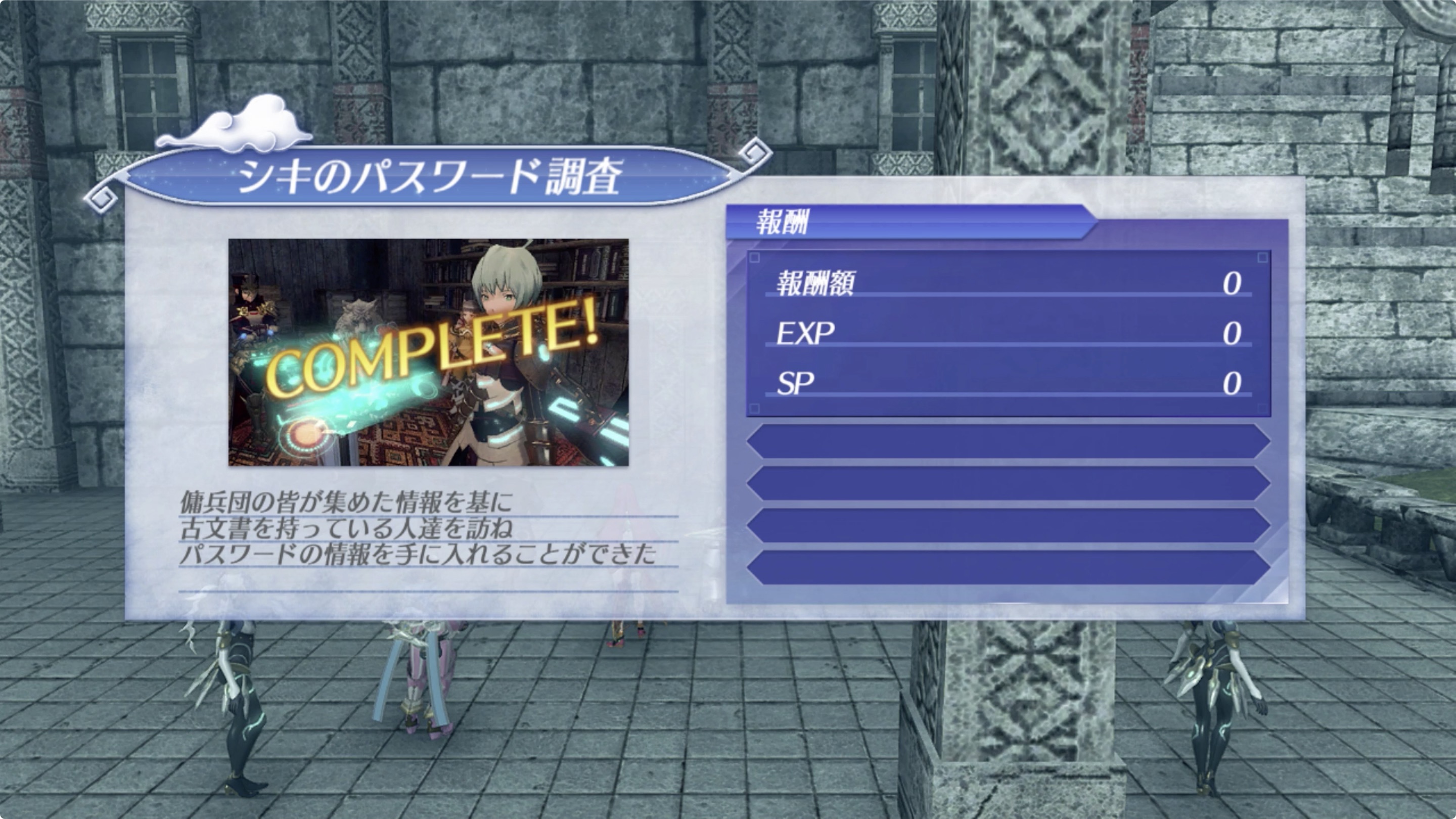 연계 퀘스트 '시키의 패스워드 조사(シキのパスワード調査) 완료