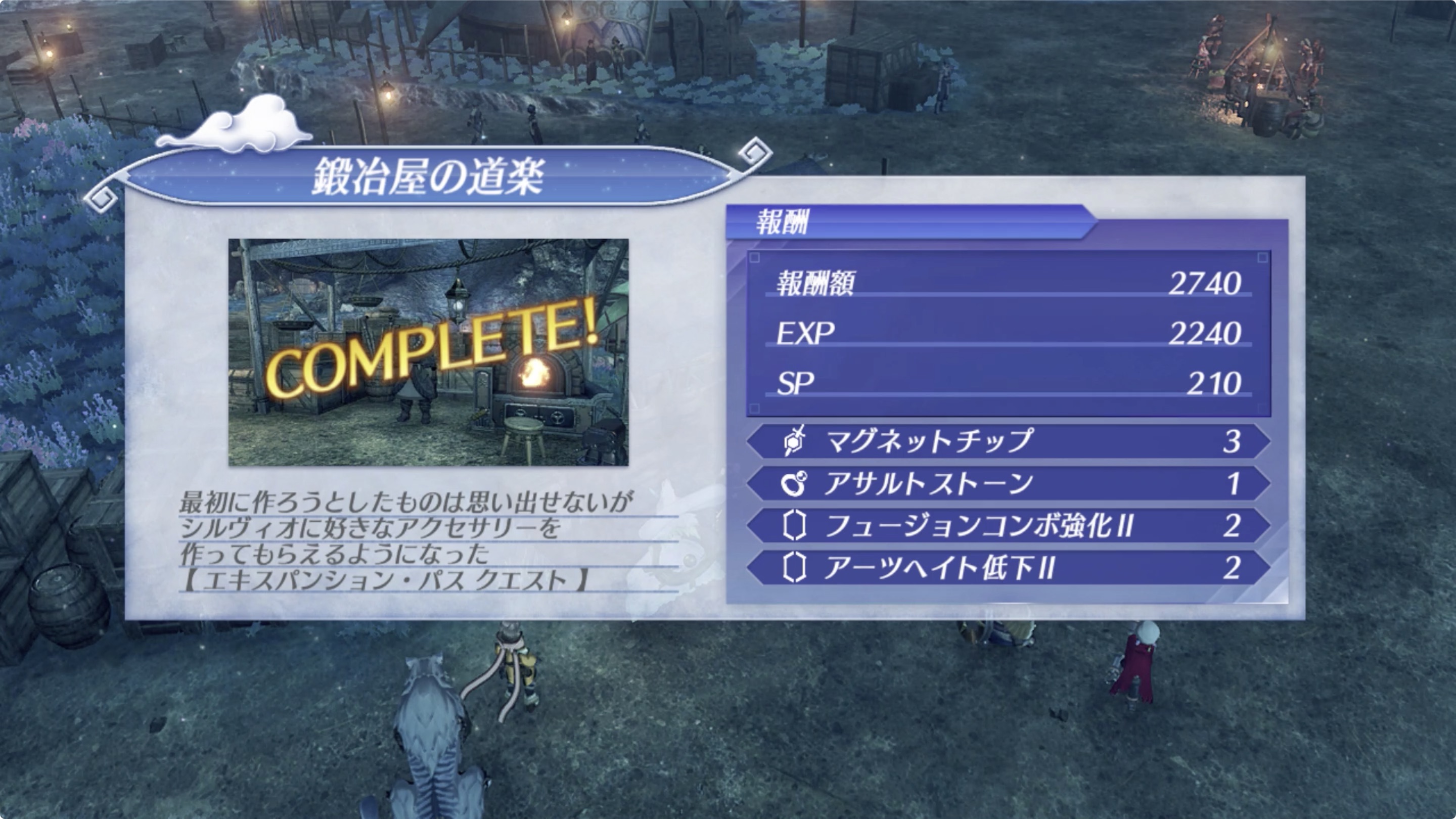 보상 아이템 : 마그넷 칩(マグネットチップ) ×3, 어설트 스톤(アサルトストーン) ×1, 퓨전 콤보 강화II(フュージョンコンボ強化I) I×2, 아츠 헤이트 저하II(アーツヘイト低下II) ×2