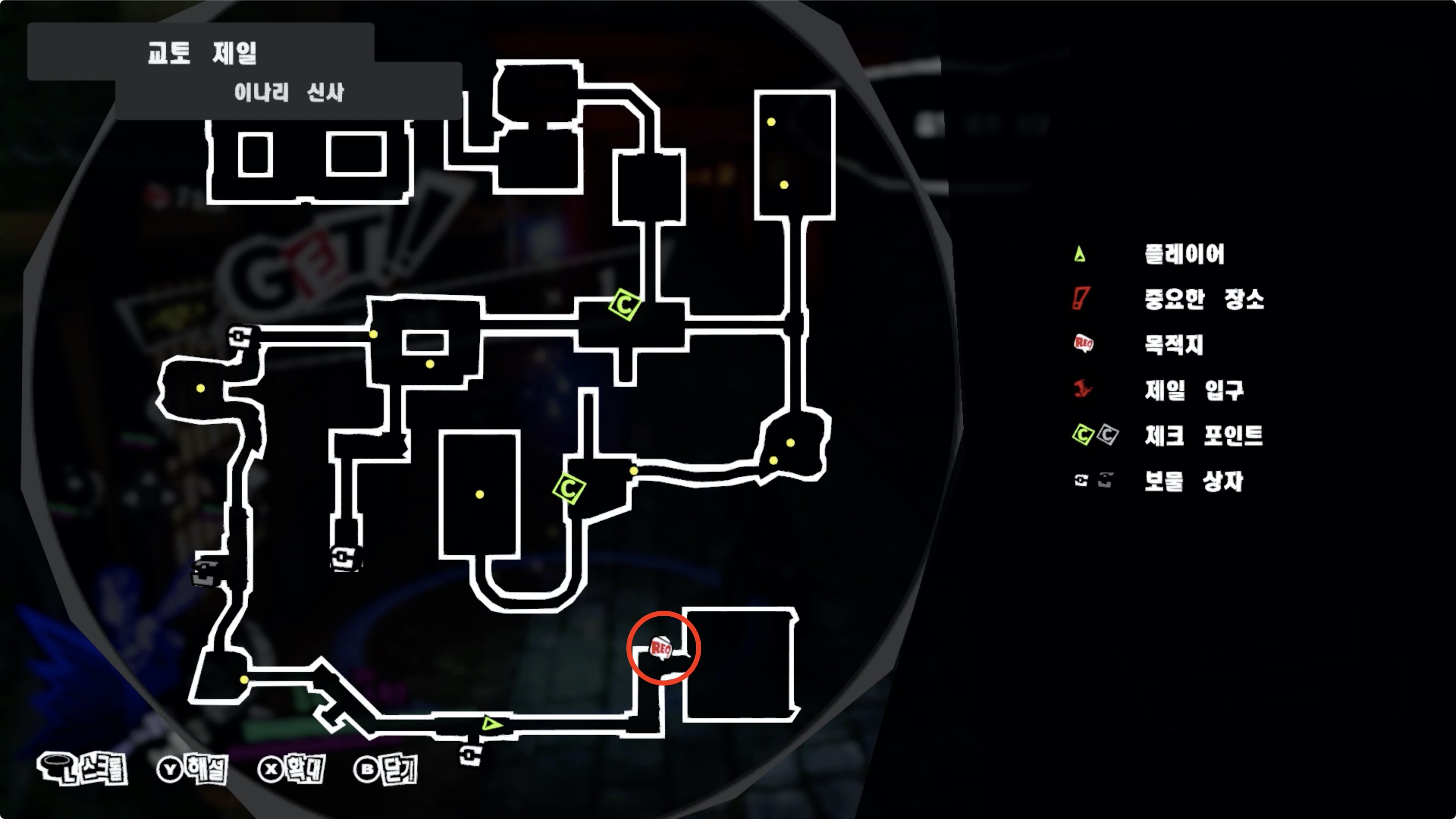 • 맵 중앙의 체크포인트 '부부 여우상'이 있는곳에서 남쪽으로 이동하면 목적지까지 바로이다.