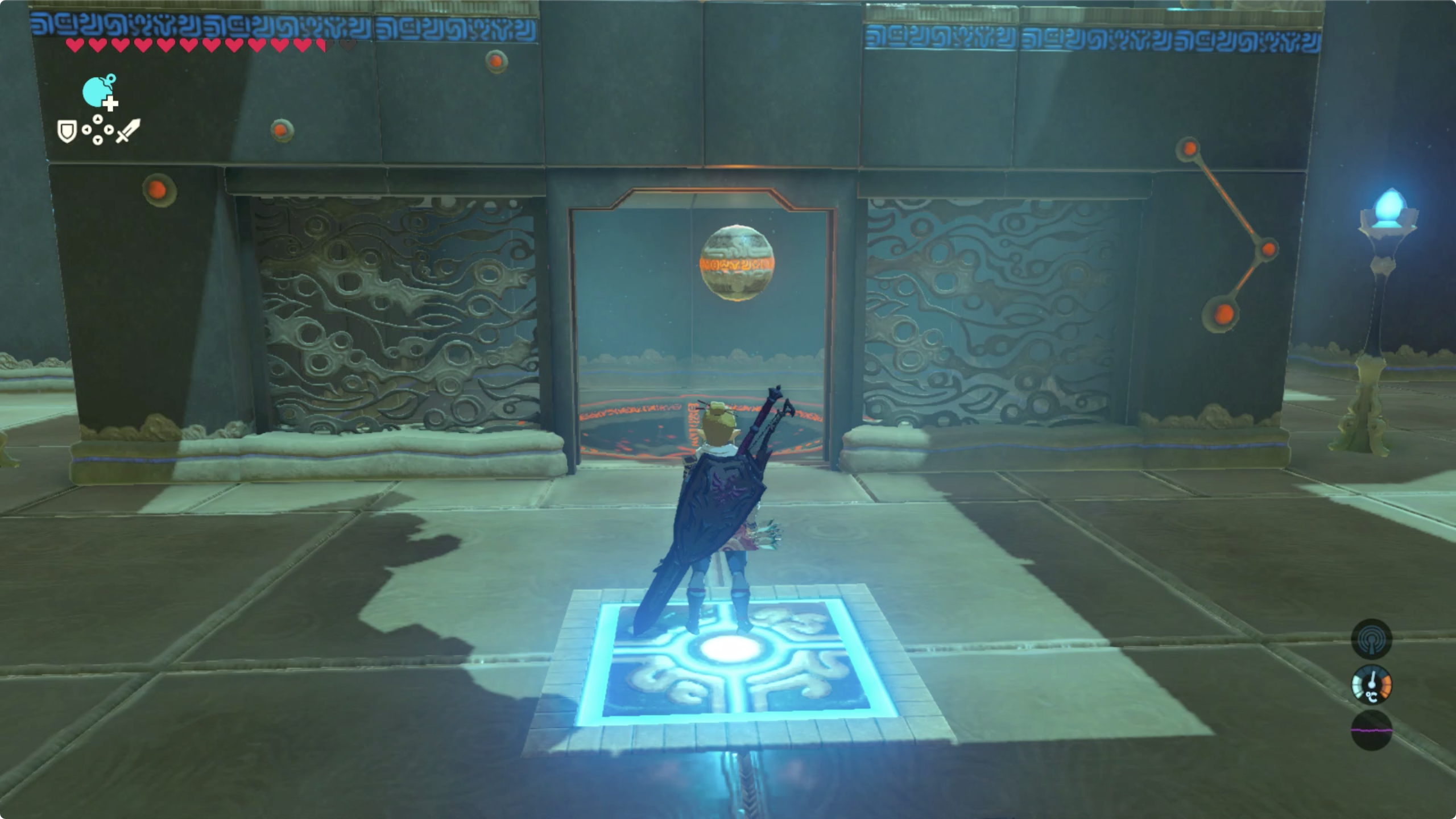 구슬이 들어가면 중앙에 문이 열리며 새로운 구슬이 나타나게 되고, 이 구슬은 입구 왼쪽편에 있는곳에 스위치에 올라선 채로 던져서 넣어주자.