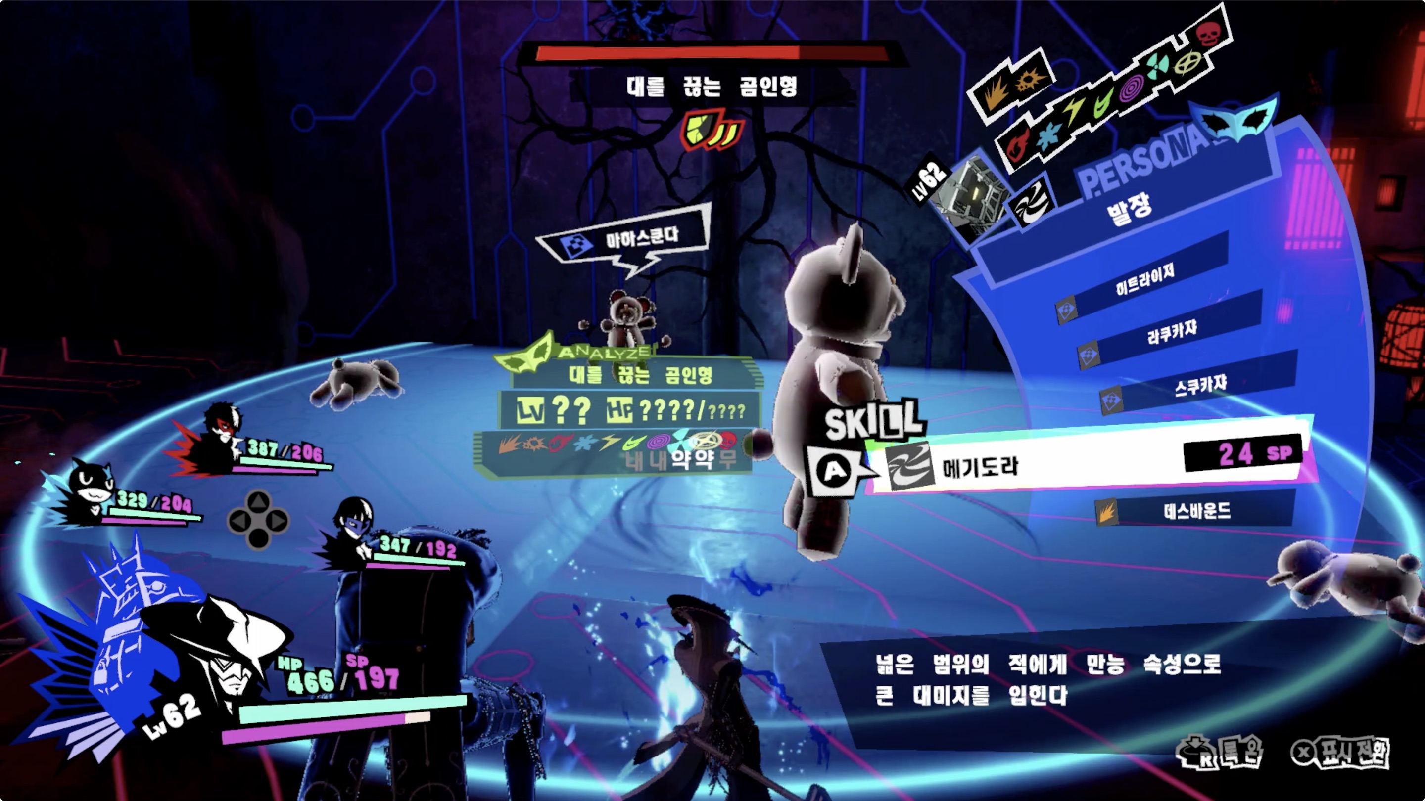 • 이동중 강적 [대를 끊는 곰인형]과 전투 가능.