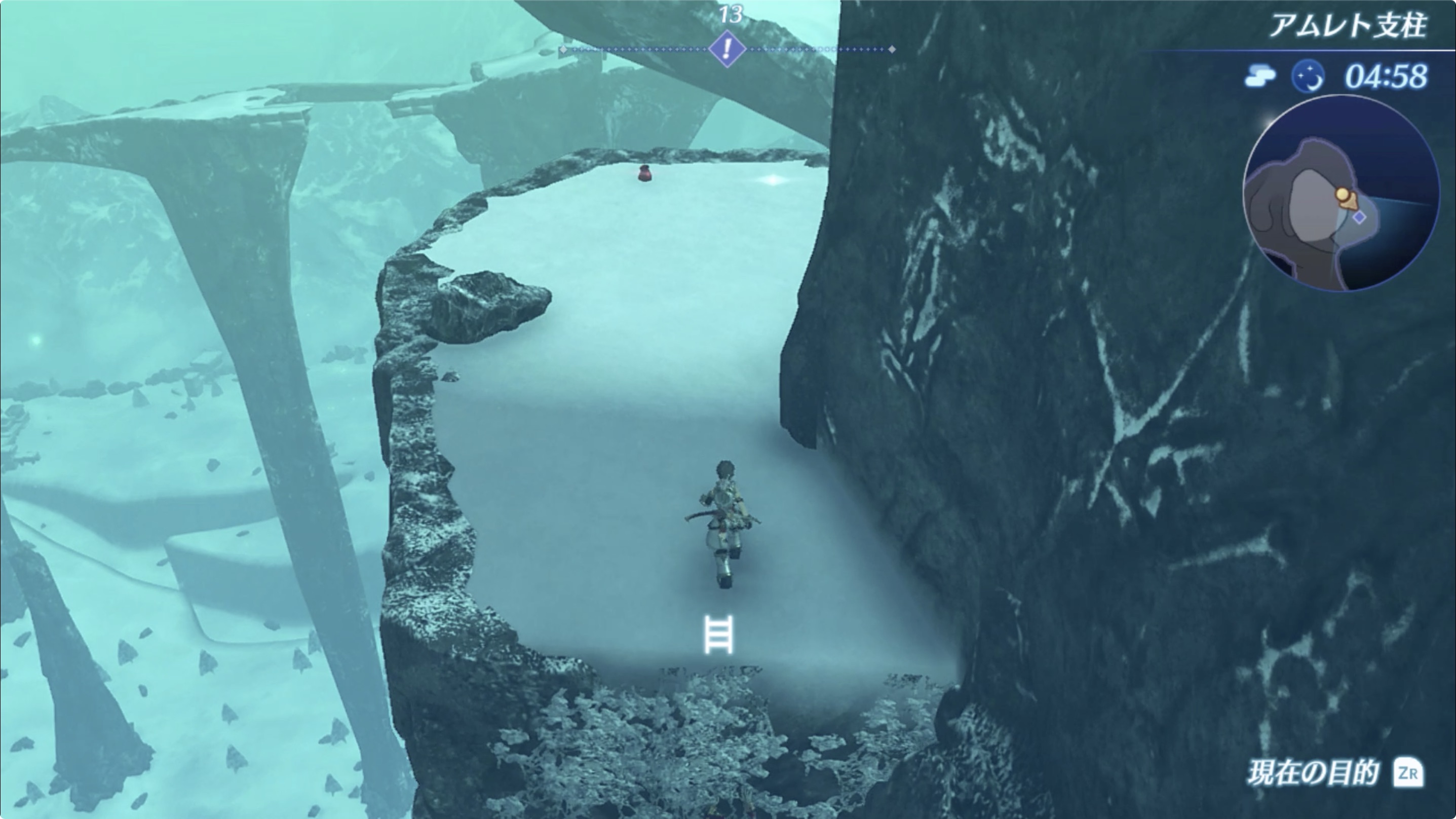 주변의 눈더미(雪の小山)를 필드 스킬을 이용해 조사해 거북 모양의 돌을 찾는다.