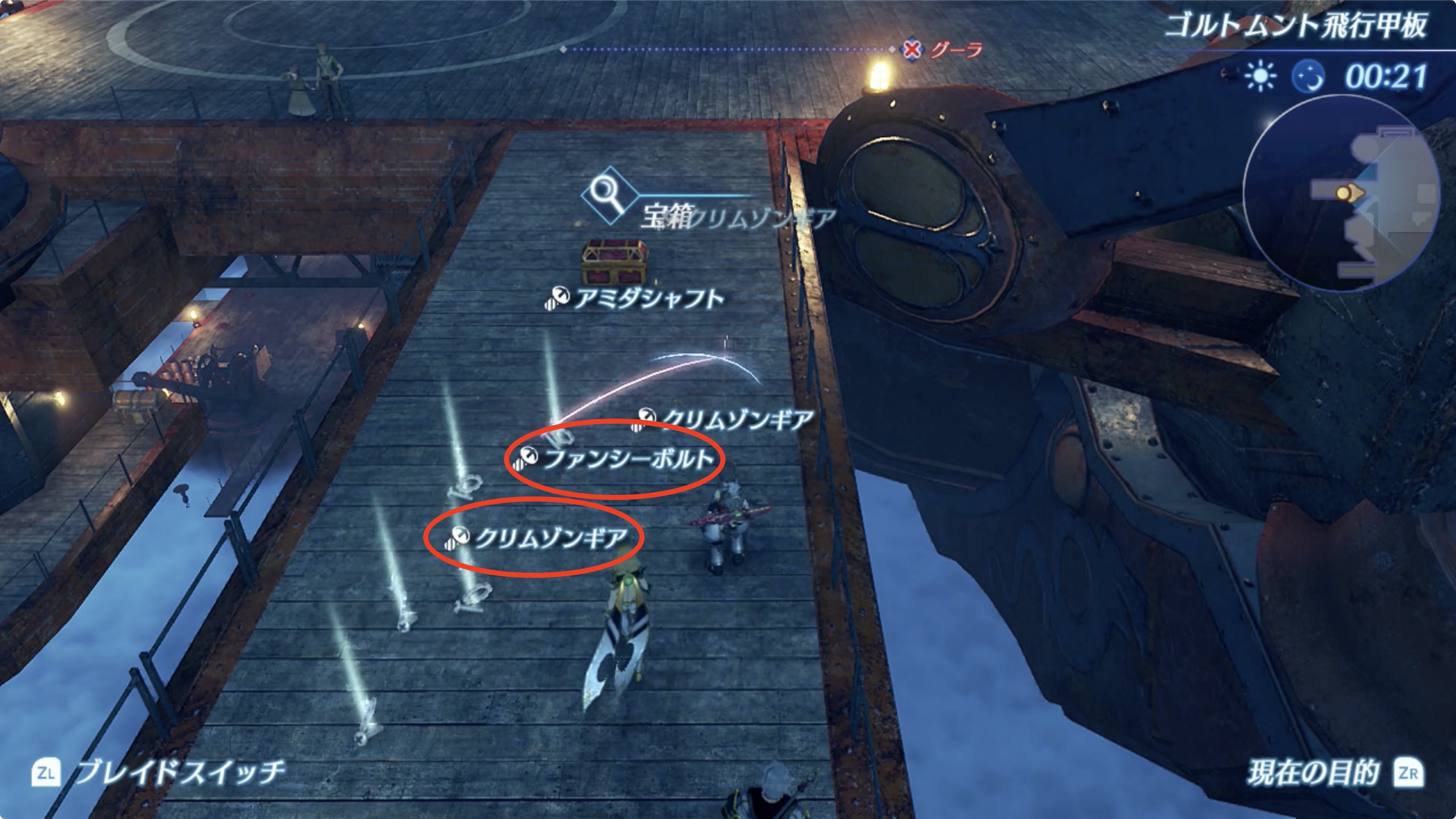 팬시볼트(ファンシーボルト)와 크림슨 기어(クリムゾンギア)는 아바리티차 창고 앞 샐비지 포인트와 , 비행갑판의 샐비지 포인트에서 입수 가능합니다.