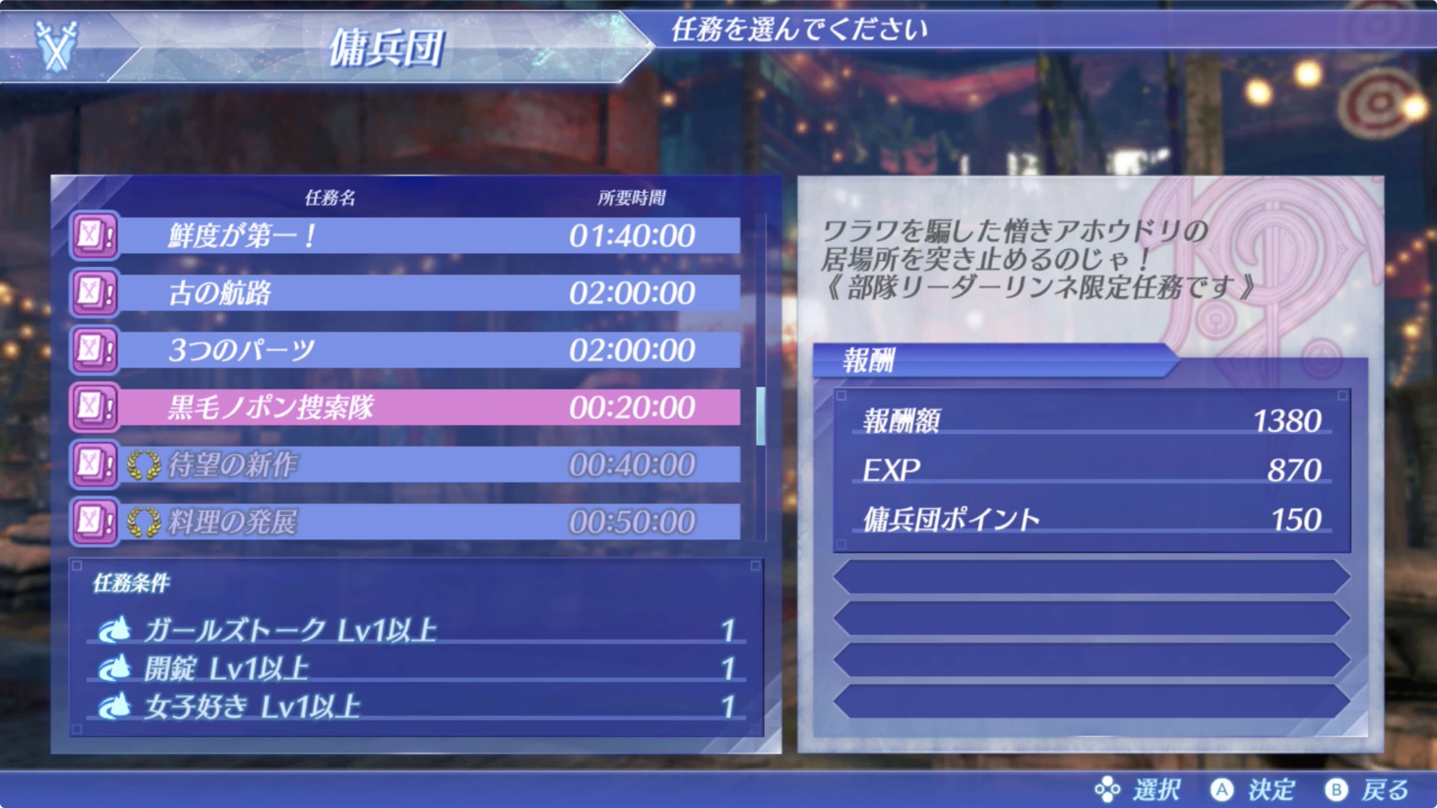 아바리티아의 용병단 임무 '검은 노폰 수색대(黒毛ノポン捜索隊)를 완료하자.