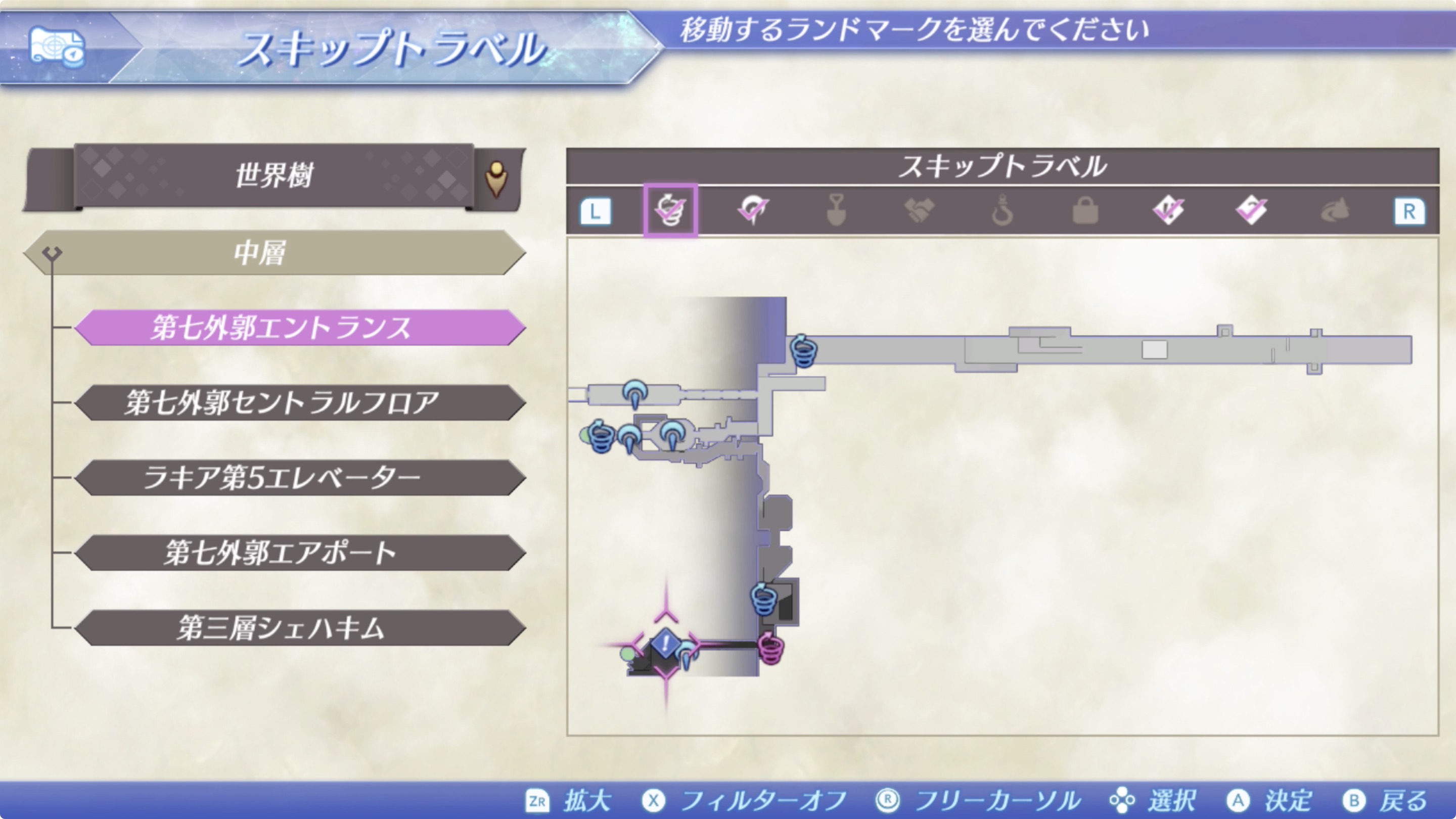 세계수 > 중층(中層) > 제7외부곽 엔트런스(第七外郭エントランス)로 이동한 후 서쪽 방향으로 이동.