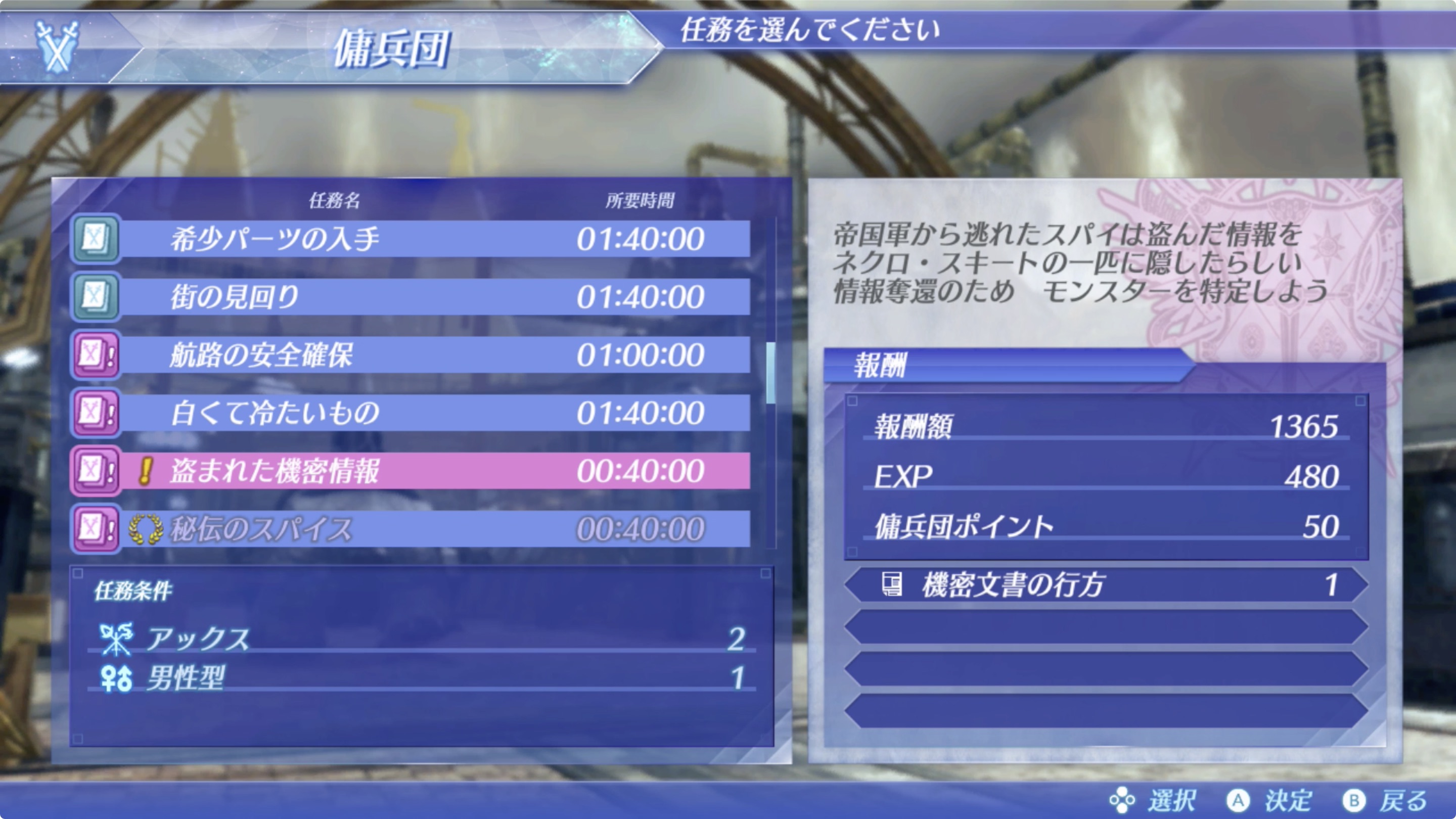 스펠비아의 용병단 임무 '도난당한 비밀정보(盗まれた機密情報)'를 완료합시다.