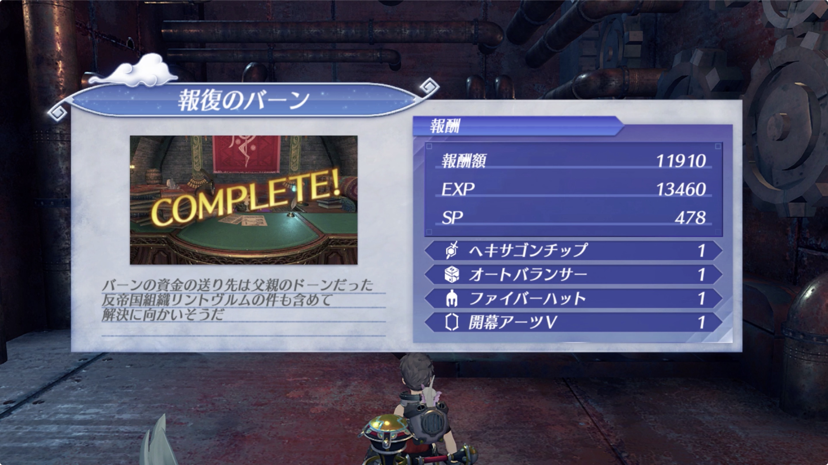 보상 아이템 : 핵사곤 칩(ヘキサゴンチップ), 오토 밸런서(オートバランサー), 섬유 모자(ファイバーハット), 개막 아츠V(開幕アーツV)