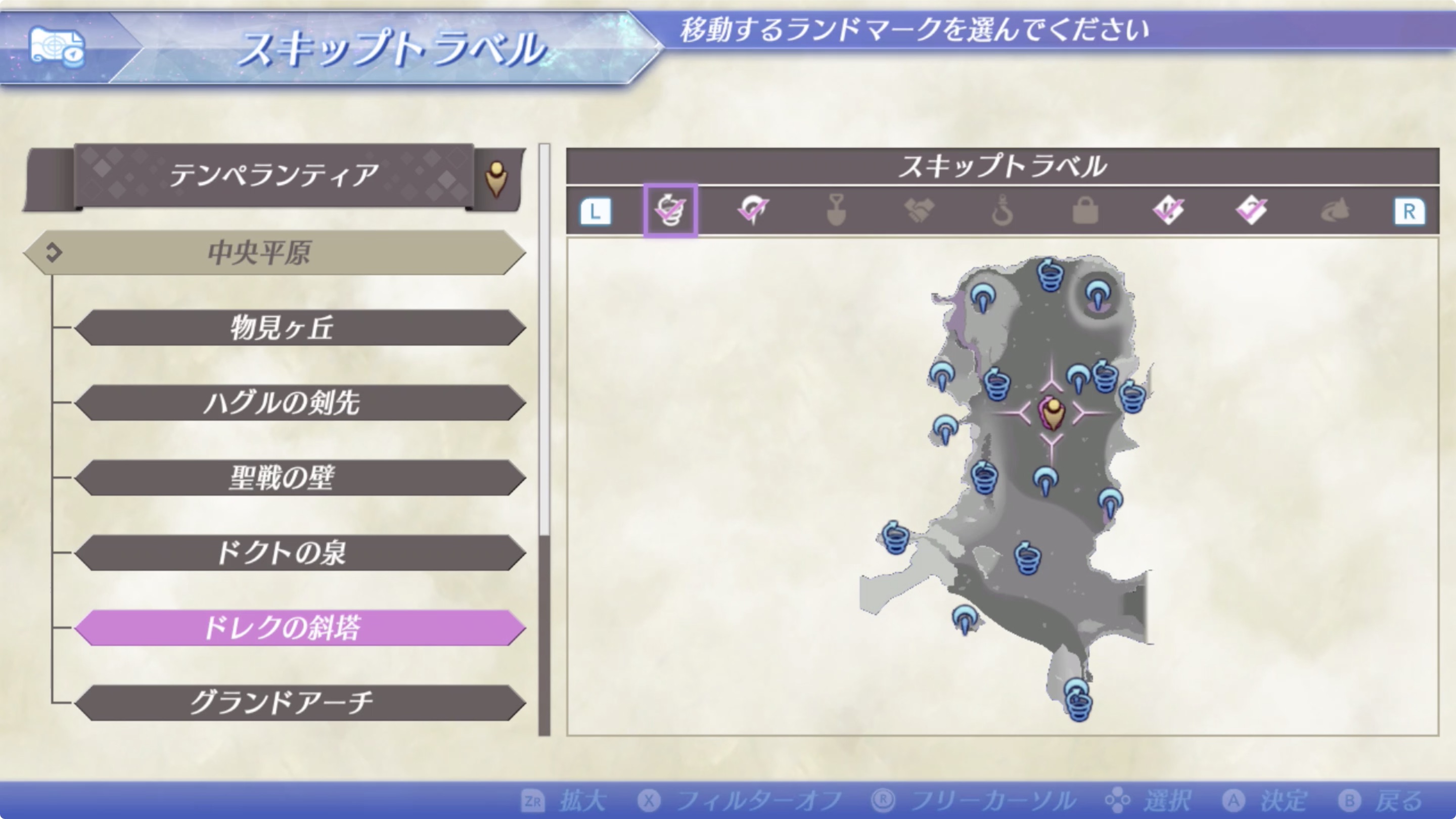 템페란티아 > 중앙평원 > 도레쿠의 사탑(ドレクの斜塔) 바로 아래의 채집 포인트.