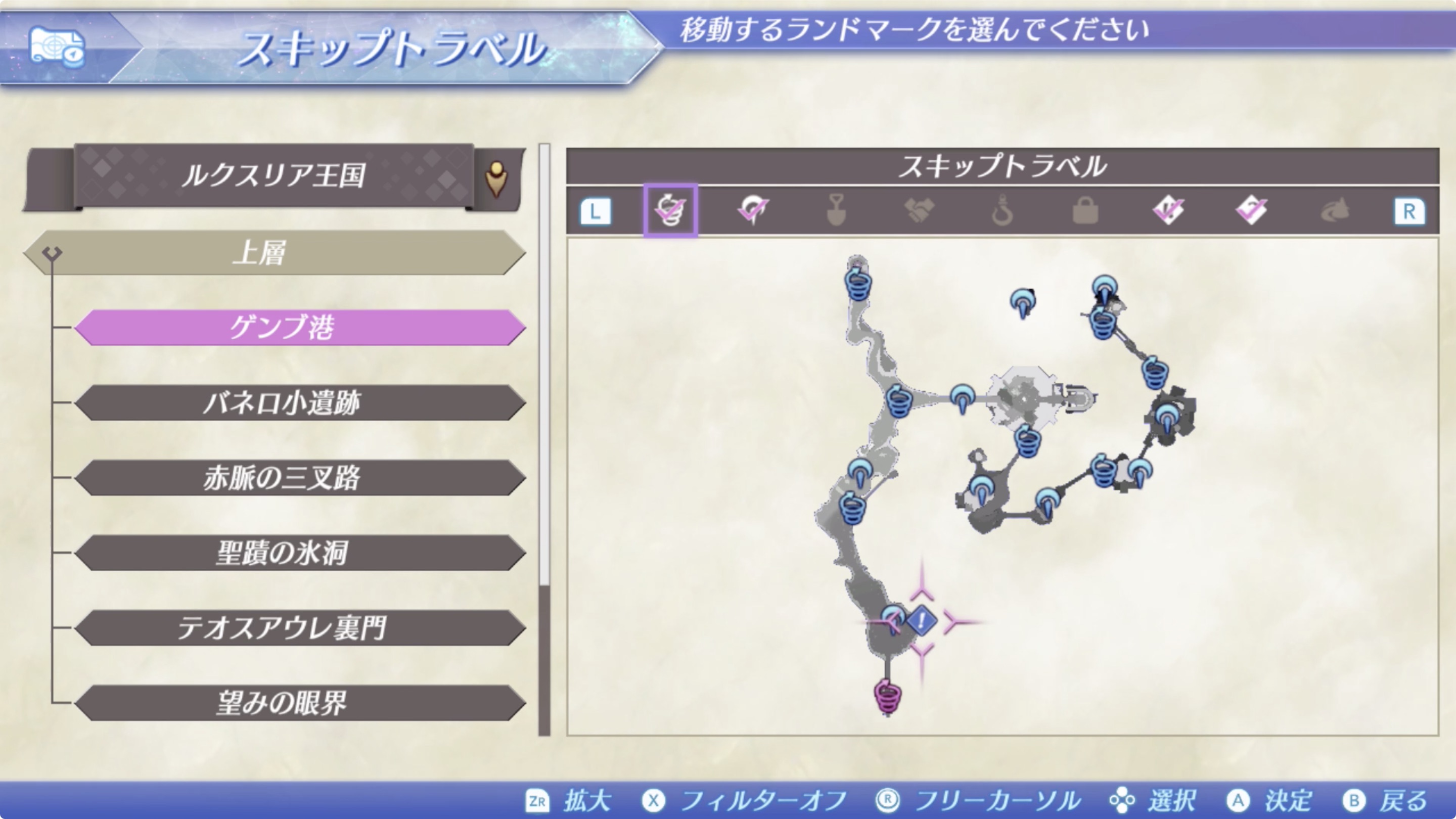 목적지는 룩스리아 > 상층 > 겐부항(ゲンブ港)의 북동쪽 구석.