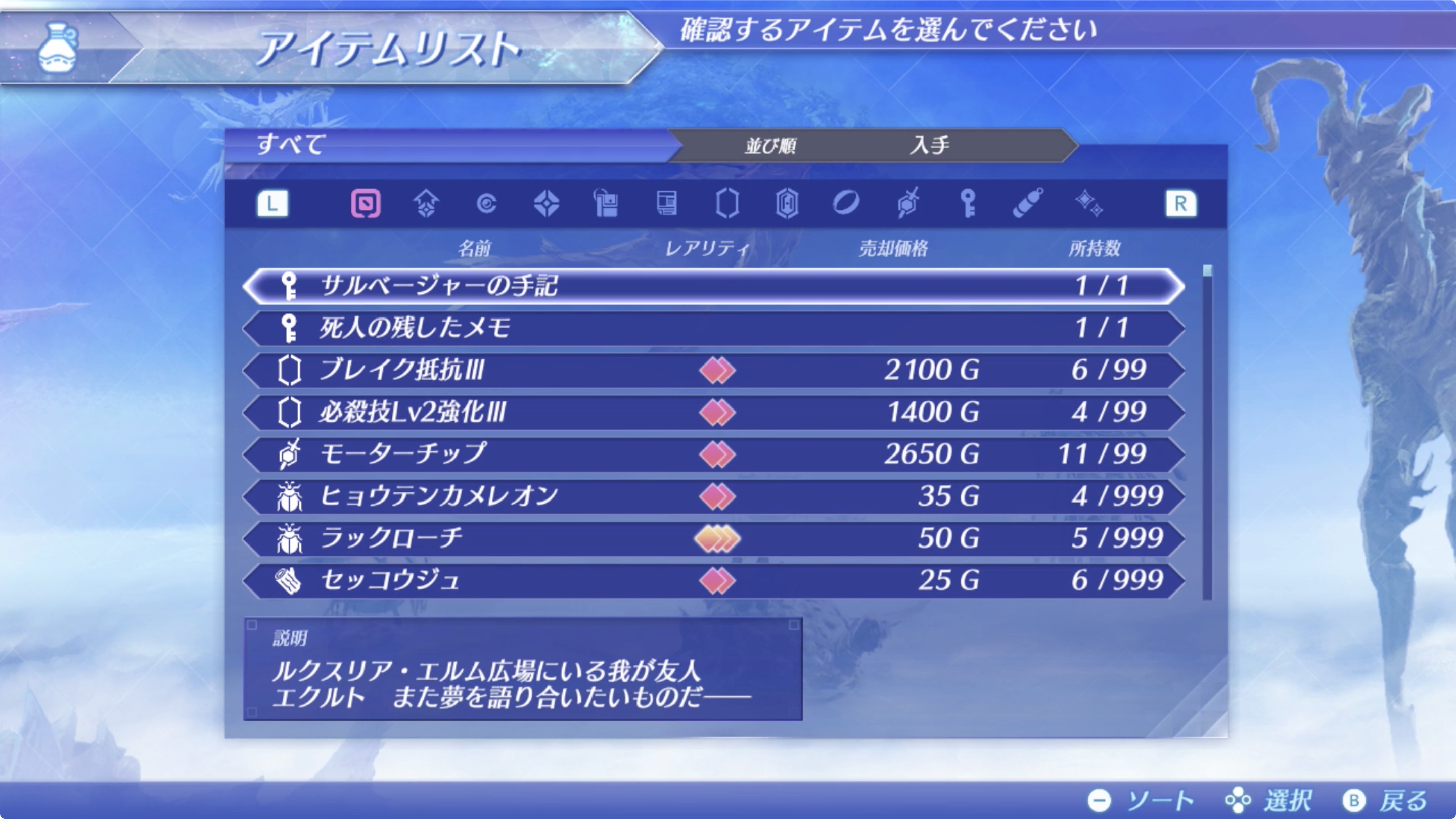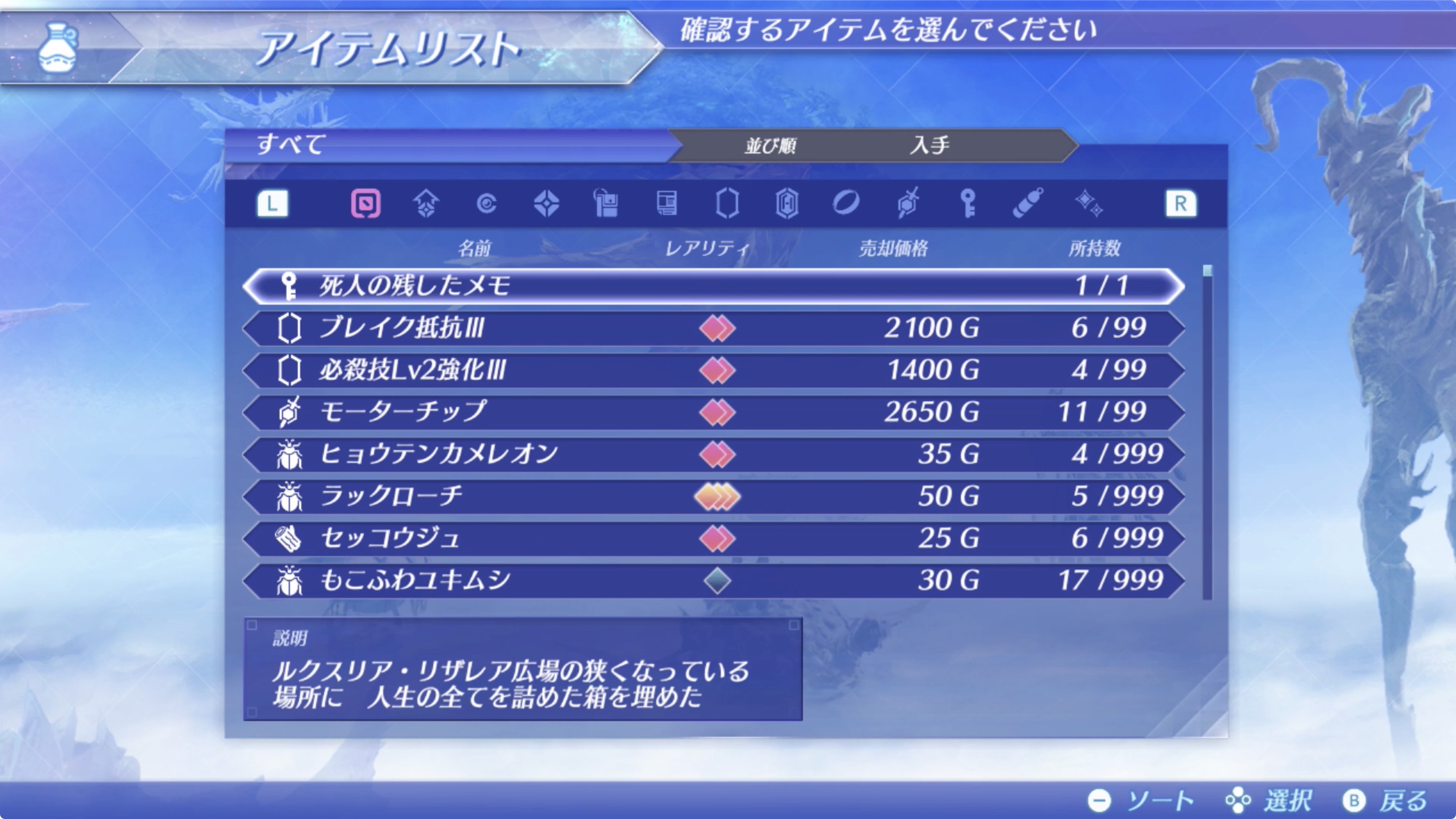 01. 룩스리아・구전의 비석(口承の石碑)에서 본 죽은 사람이 남긴 메모에 적혀있는 장소로 가자.
