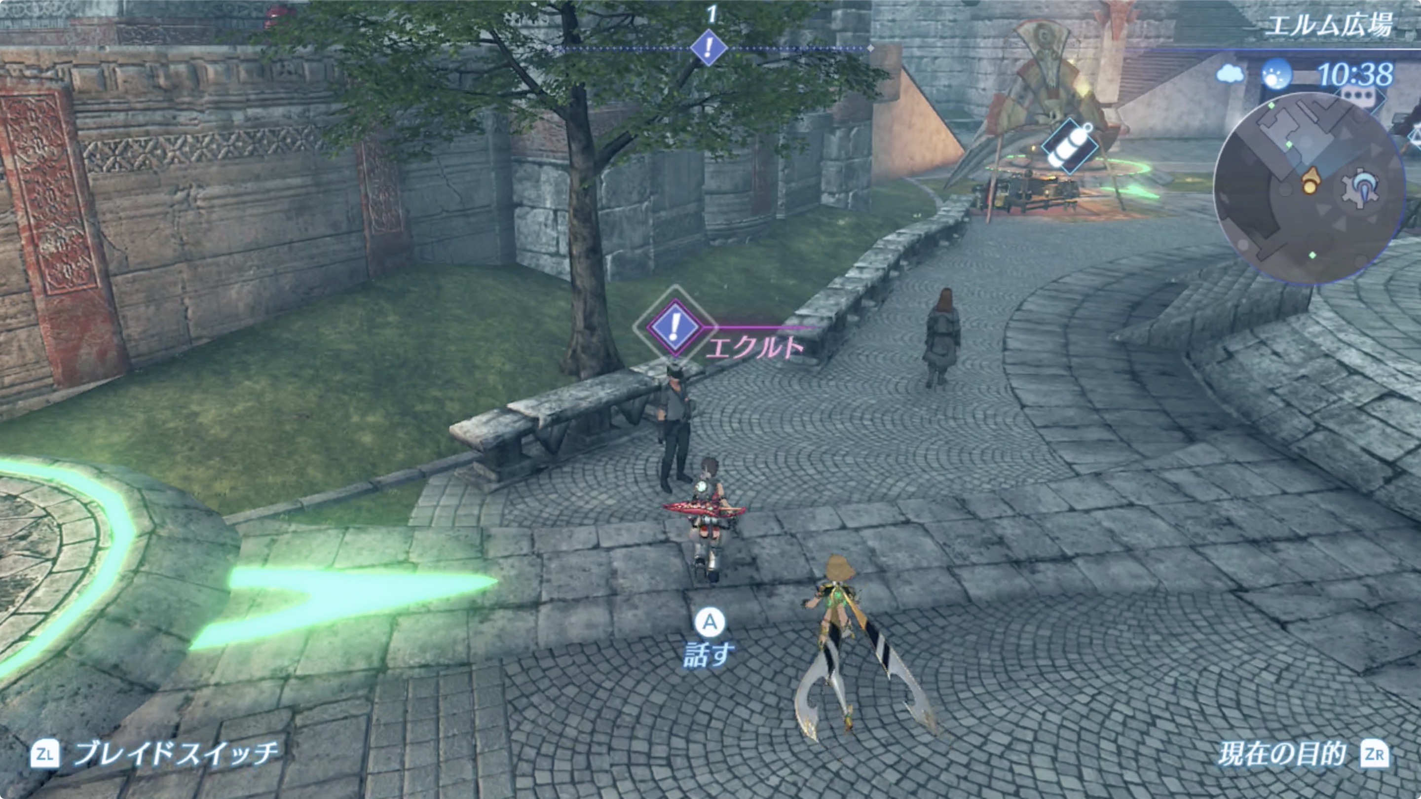 룩스리아의 엘름 광장(エルム広場)에 있는 에쿠르트(エクルト)를 찾아가 대화를 합시다