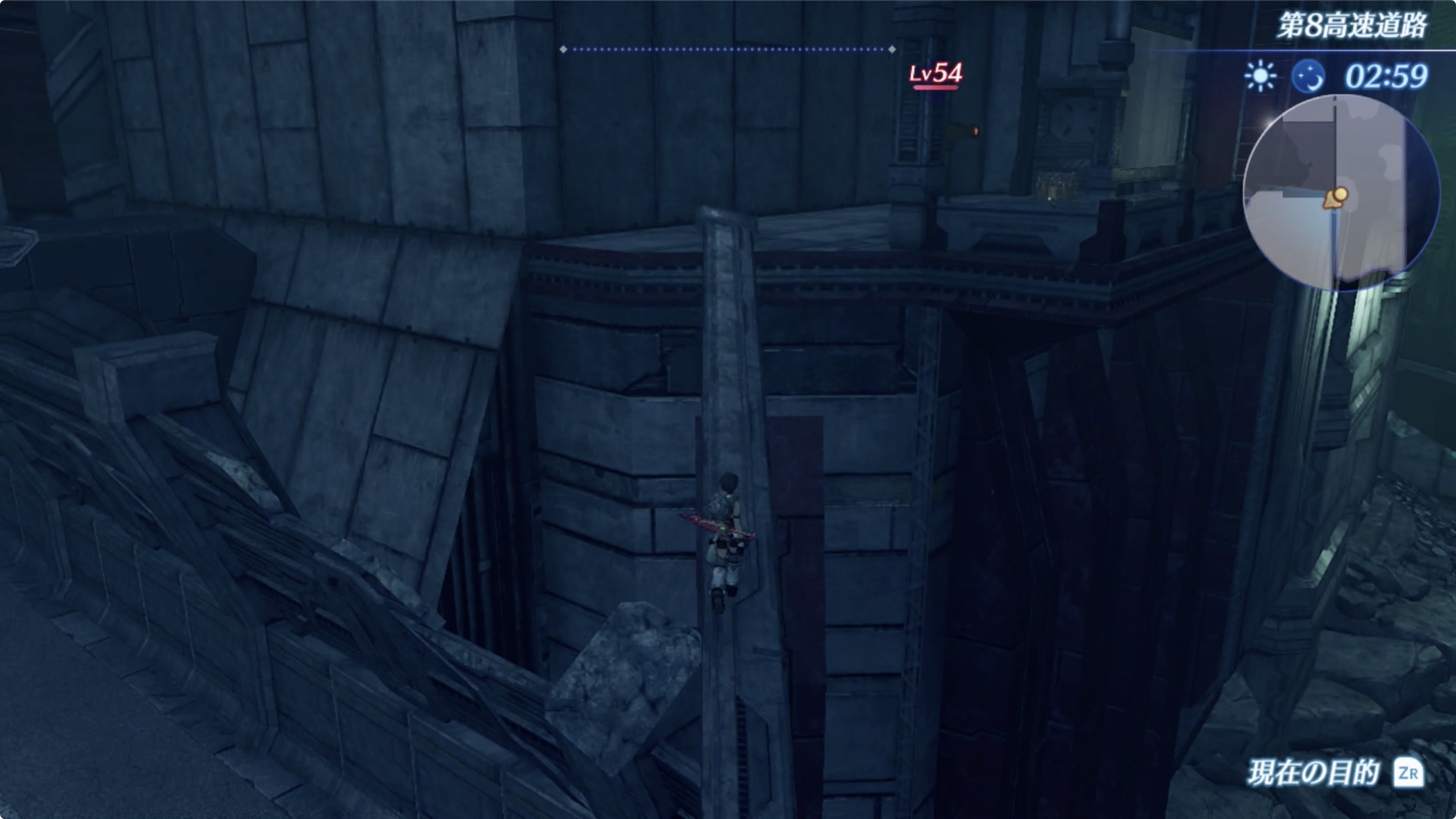 우선 모르스의 땅 (モルスの地) > 시가 (市街) > 쓰러진 오피스 빌딩(倒れたオフィスビル)으로 이동한 후 건물 내부를 통해 위로 올라가서 제8고속도로(第8高速道路)로 나갑니다.