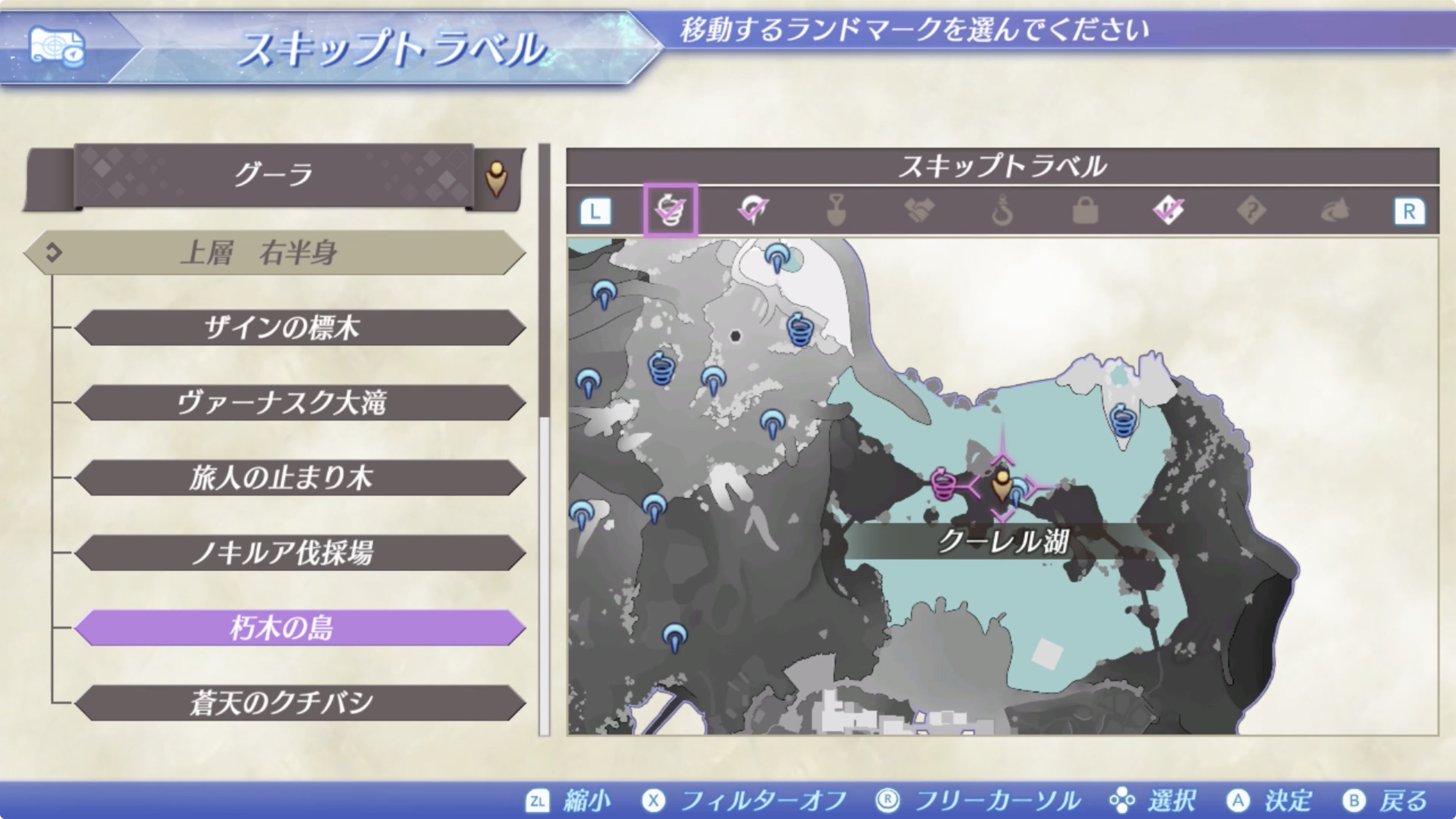 구우라 (グーラ) > 상층 우반신(上層 右半身) > 후목의섬(朽木の島)으로 이동한 후. 정면에 보이는 채집 포인트