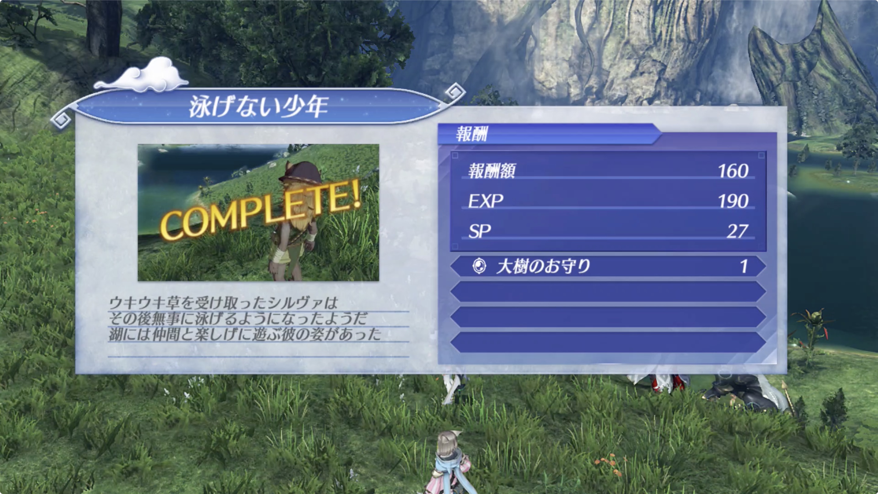 02. 구우라(グーラ)・쿠렐 호수(クーレル湖) 근처에 있는 실바(シルヴァ)에게 채집한 우키우키 초를 건네주자.