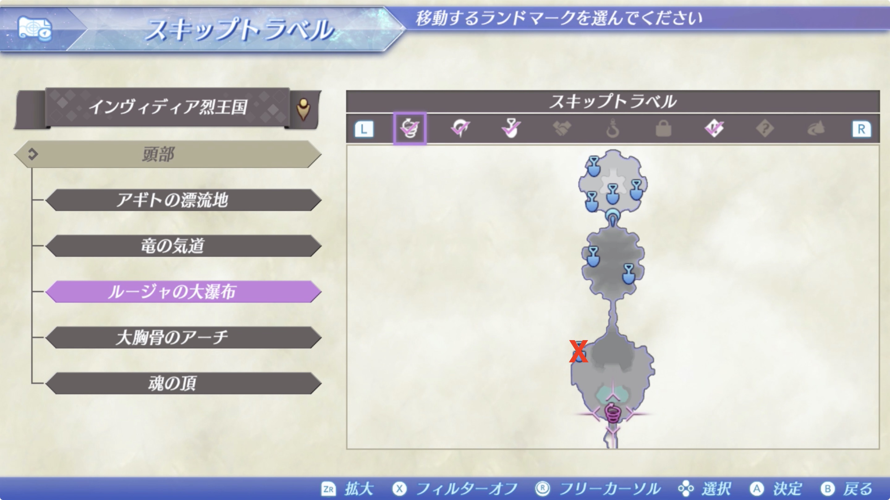 인비디아(インヴィディア) 용의 위장(竜の胃袋)의 채집 포인트. 다음 지도에 X 표를 해놓은 채집 포인트 한곳을 제외하고는 나머지 모두 엄청 나옵니다.