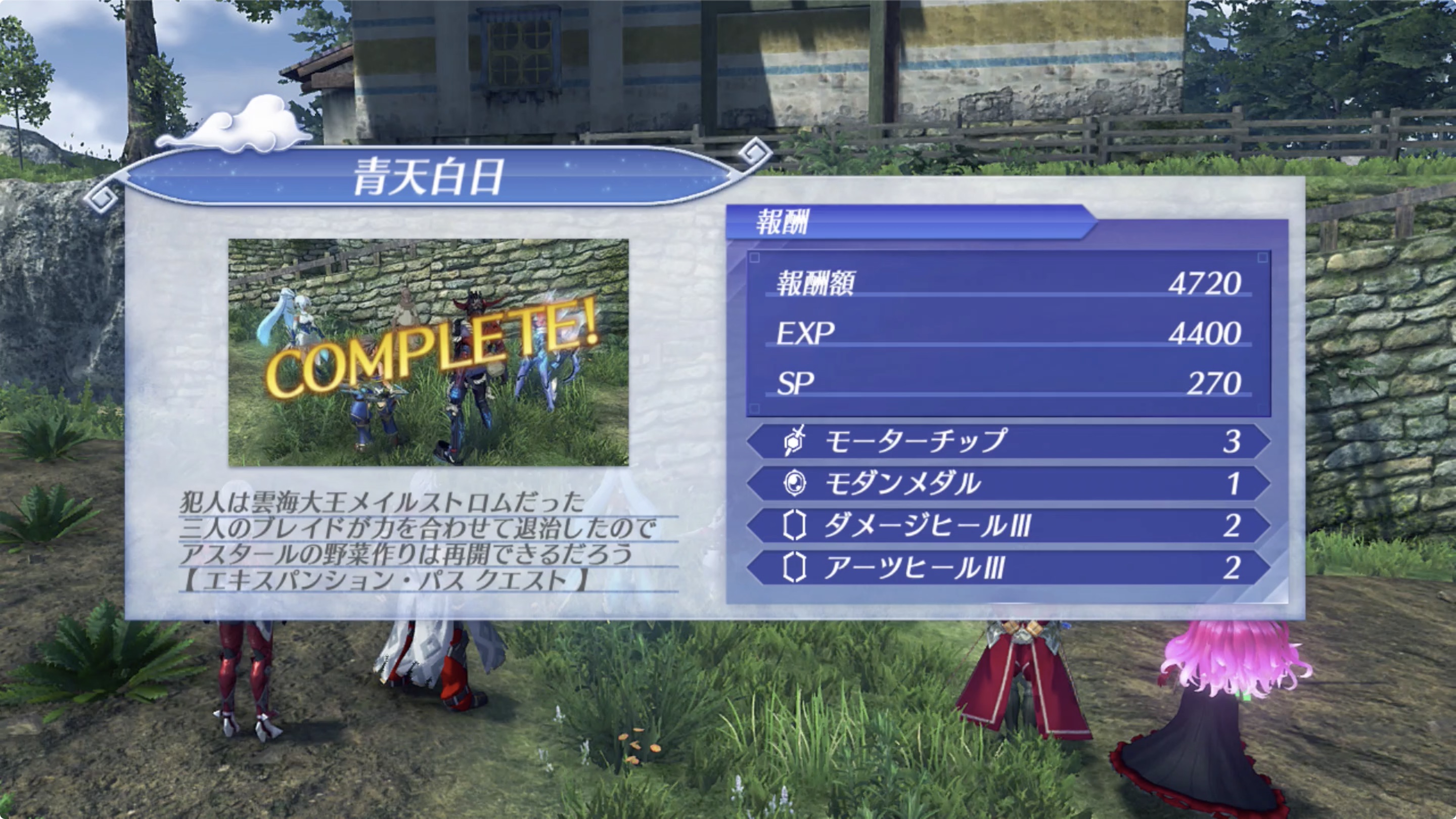 보상 아이템 : 모타 칩(モーターチップ) x3, 모던 메달(モダンメダル), 대미지 힐III(ダメージヒールIII) x2, 아츠 힐III(アーツヒールIII) x2