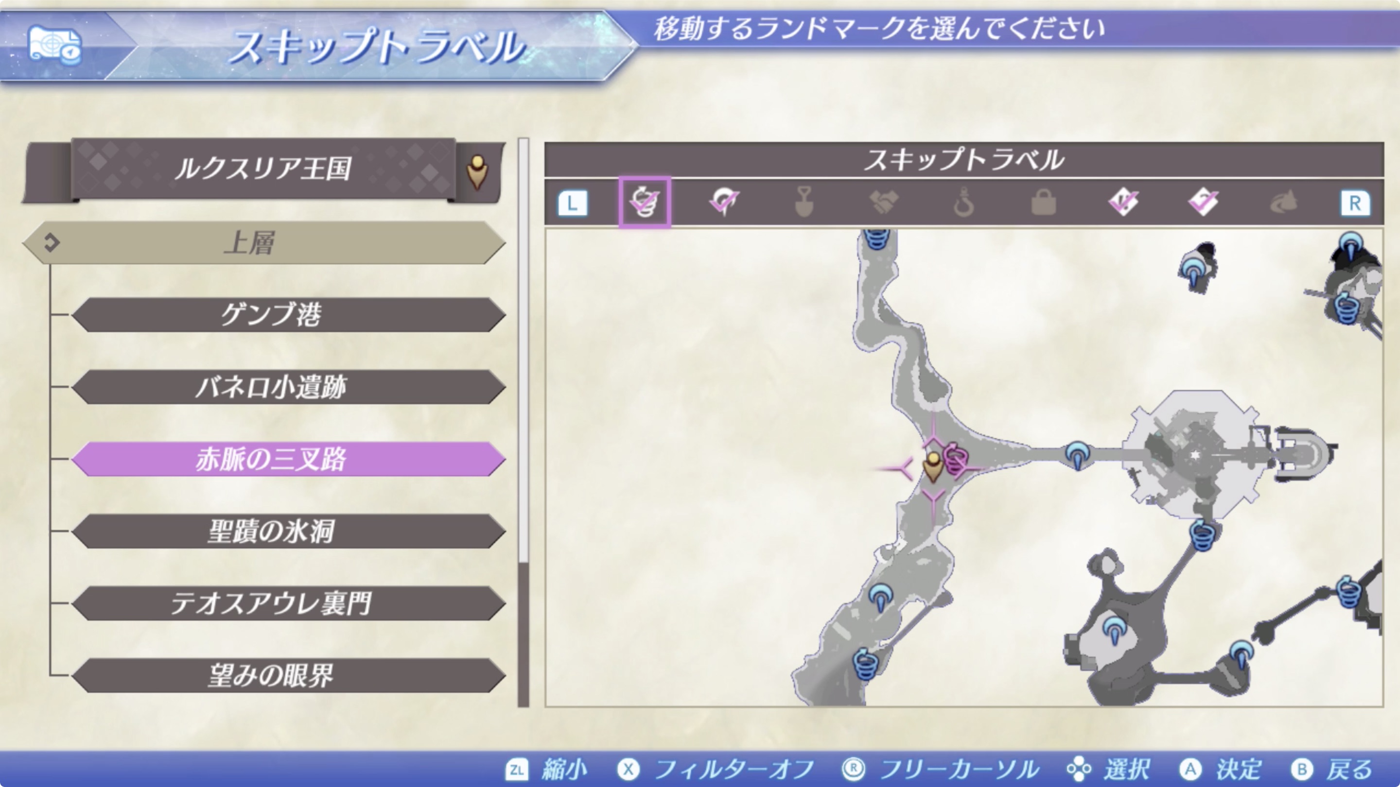 룩스리아 왕국(ルクスリア王国) > 두부(頭部) > 적맥의 삼거리(赤脈の三叉路)의 바로 서쪽 채집 포인트
