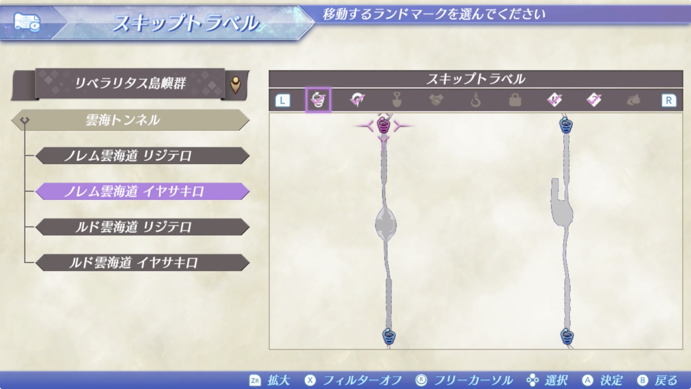 리베라리타스 도서군(リベラリタス島嶼群) > 운해 터널(雲海トンネル) > 노룸운해로 이야사키 입구(ノレム雲海道 イヤサキ口)로 이동한. 후, 화면을 돌리면 바로 나오는 채집 포인트 말고 조금 더 뒤에 있는 채집 포인트.