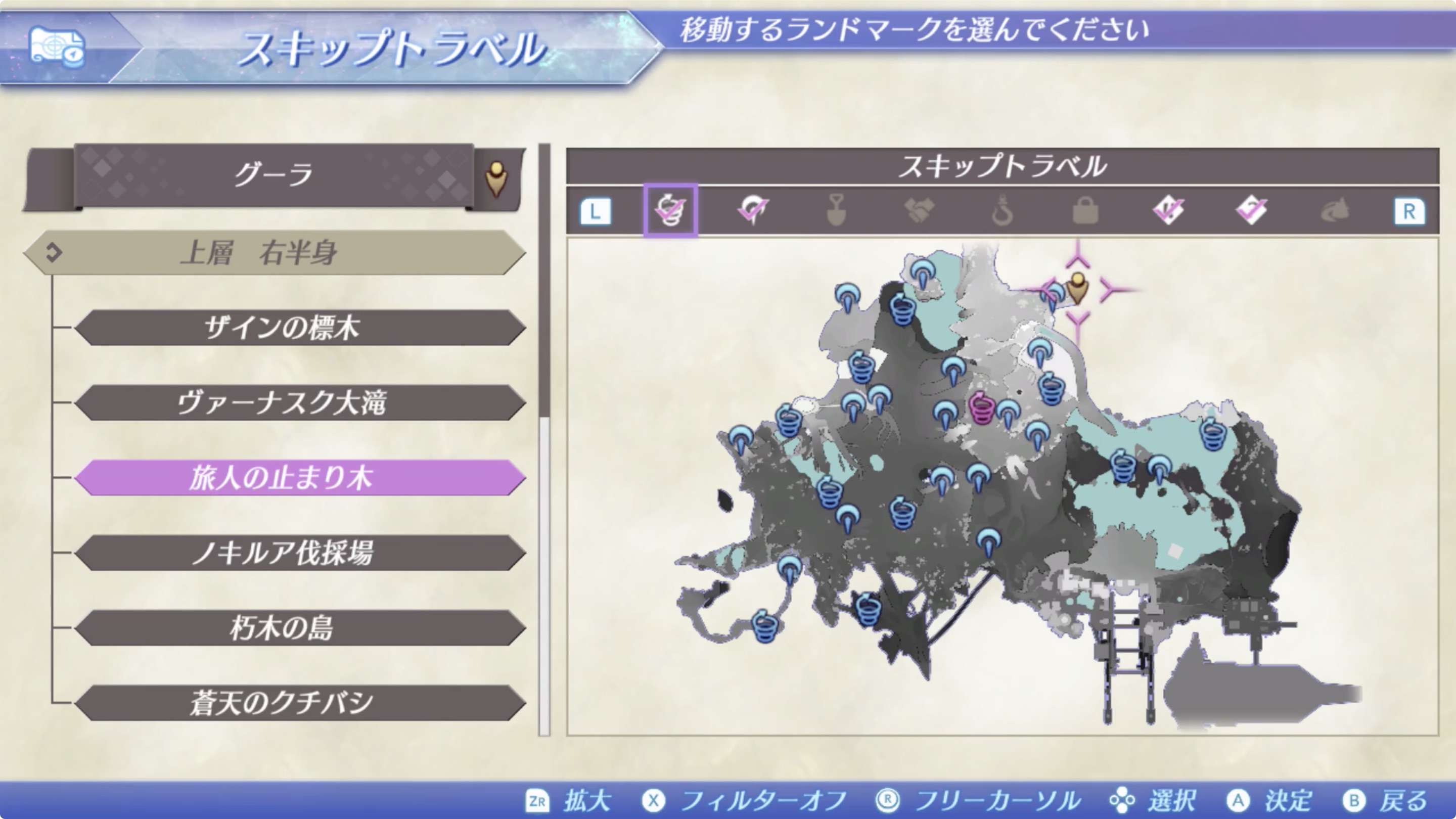 구우라(グーラ) > 상층 우반신(上層 右半身) > 스키트의 둥지(スキートの巣) 부근의 채집 포인트.