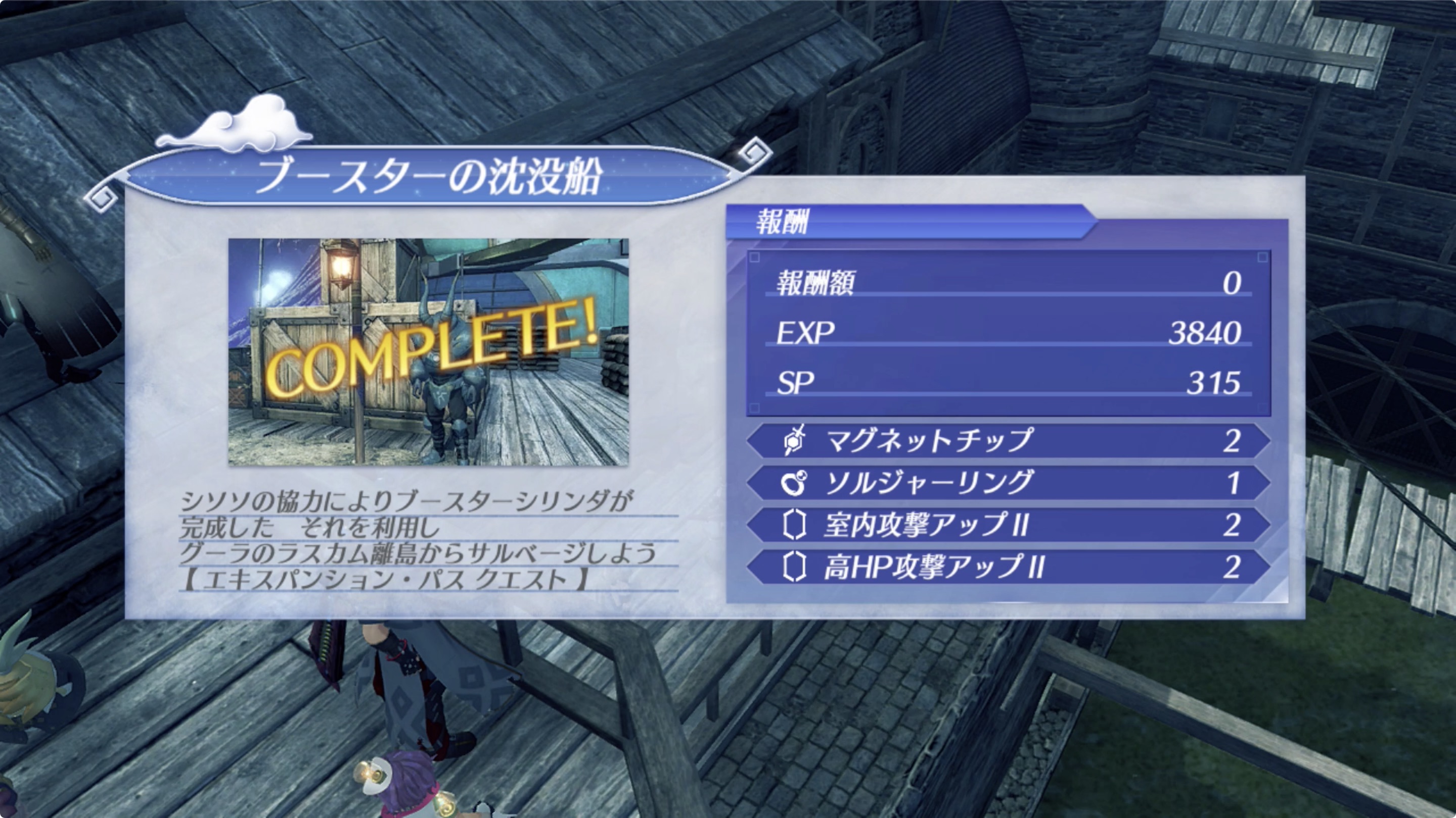 이후 시소소에게서 부스터 실린더를 계속해서 만들 수 있게되며, 구우라(グーラ)의 라스캄낙도(ラスカム離島)에서 부스터 실린더를 이용해 대량의 부스터를 입수 할 수 있게 됩니다.