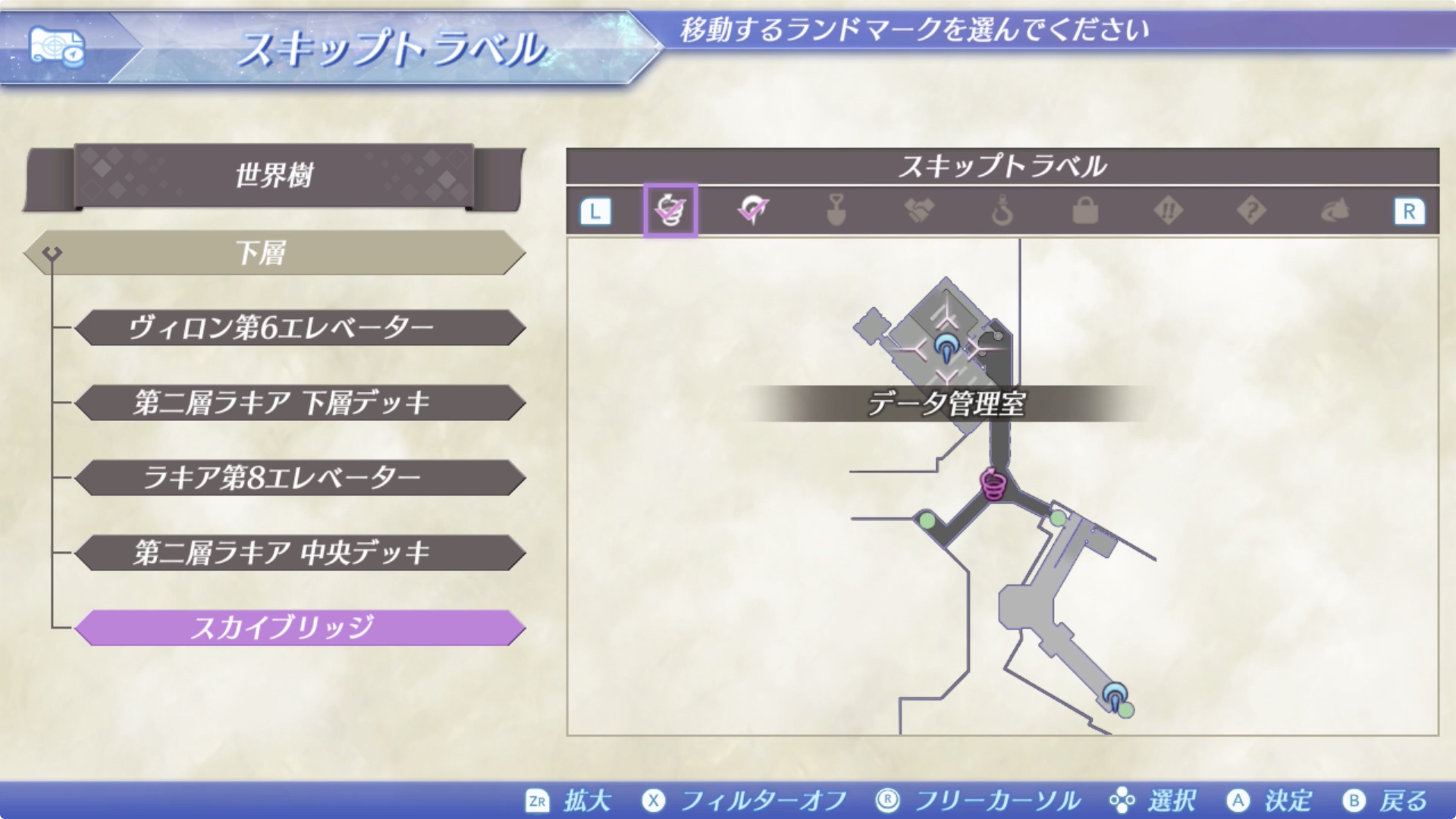 데이터 관리실은 세계수(世界樹) > 하층(下層) > 스카이 브릿지(スカイブリッジ)에서 북쪽 방향의 방입니다.