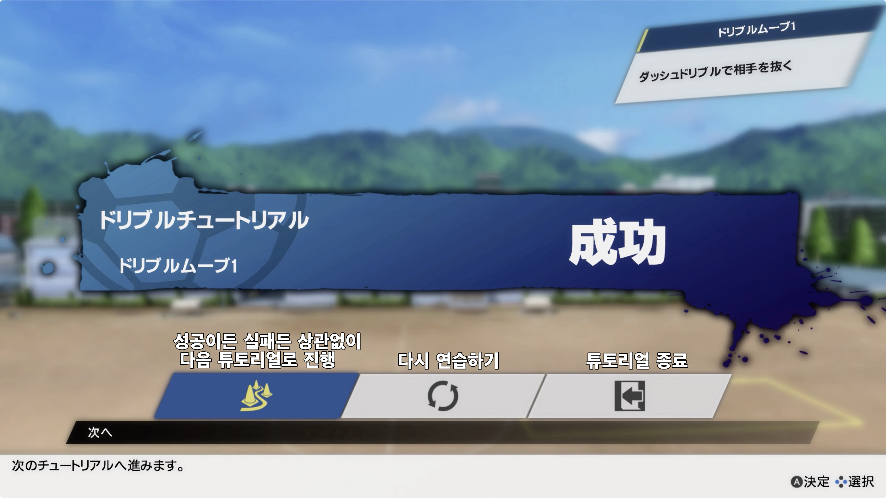 처음으로 하게되는 튜토리얼은 드리블 / 태클의 기본에 관한 것이며,