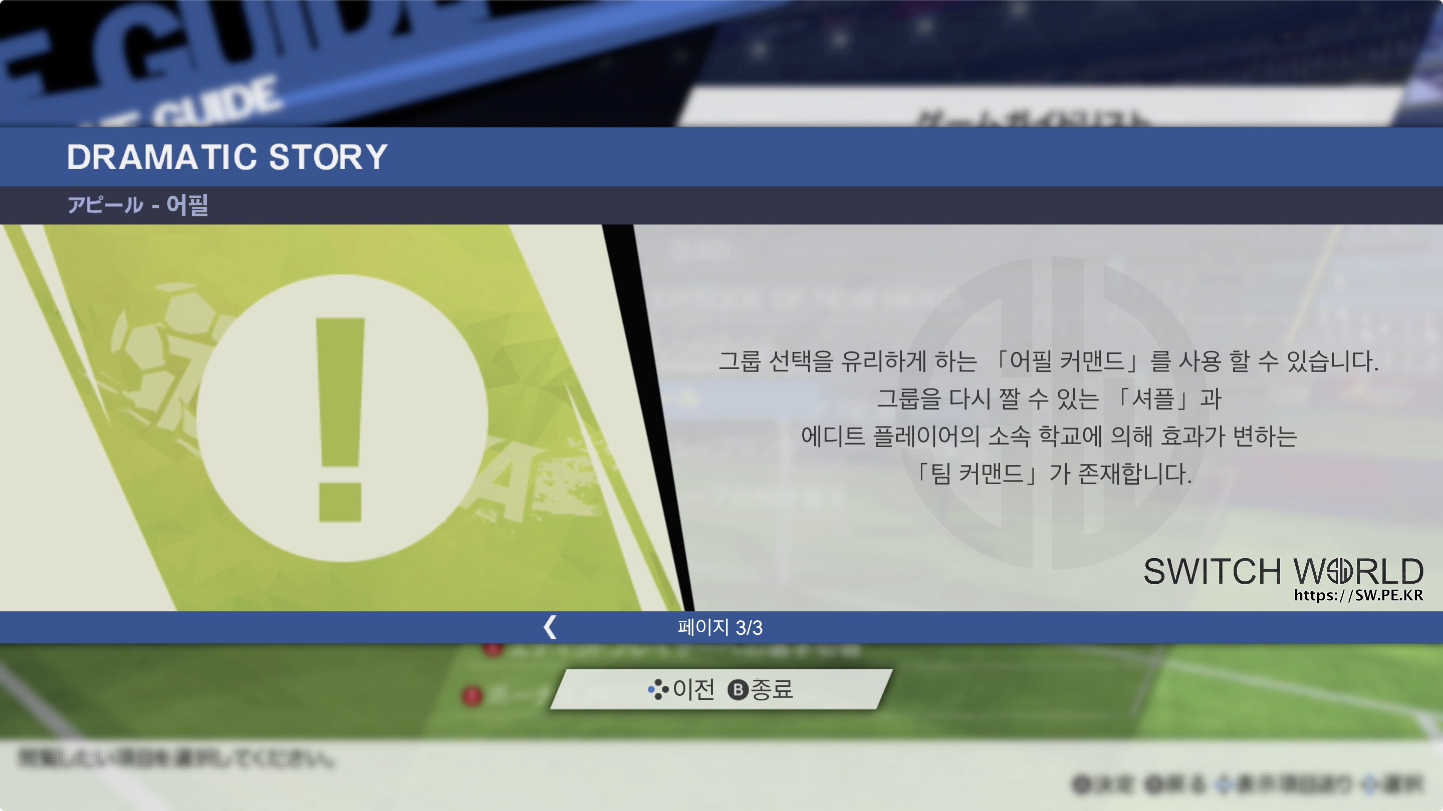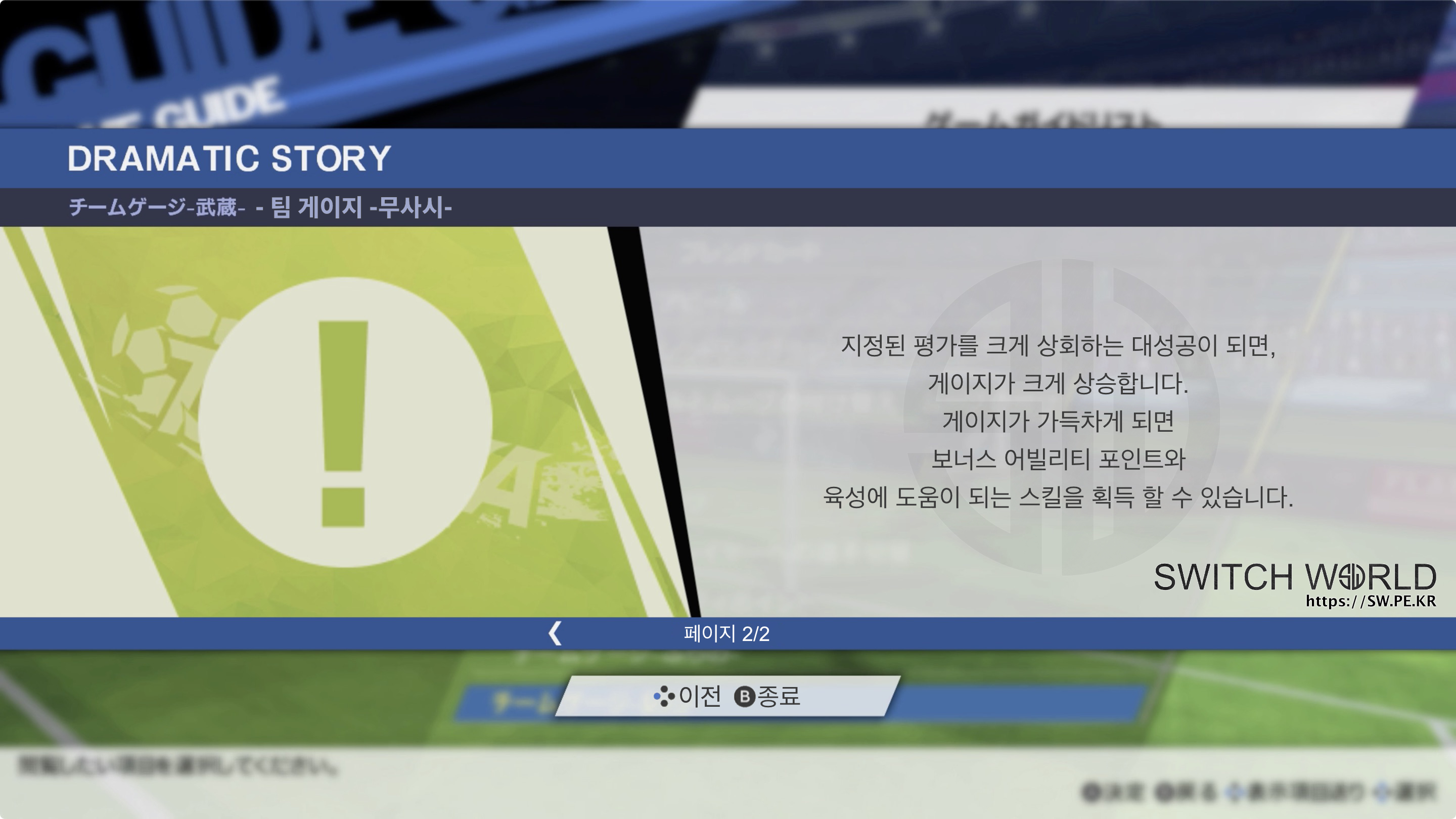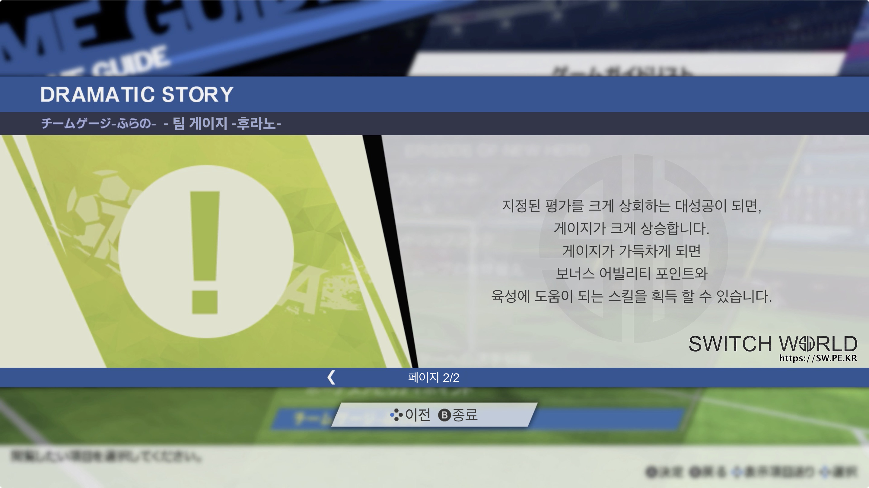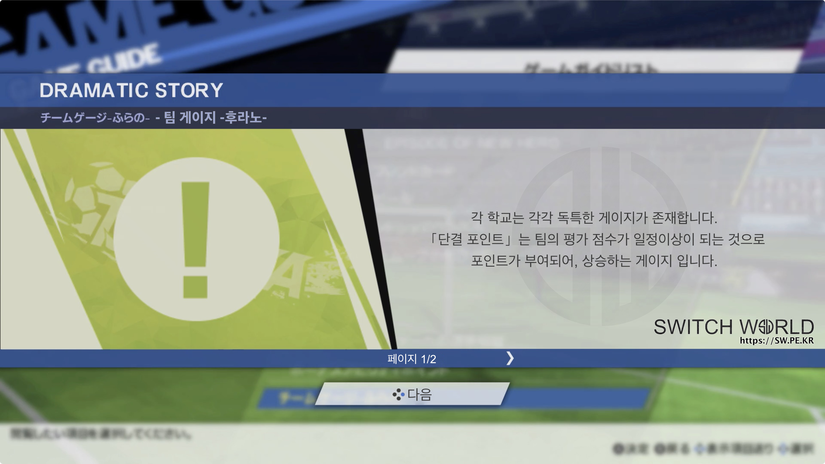 본 게시물은 '캡틴 츠바사 RISE OF NEW CHAMPIONS'의 COLLECTION > GAME GUICE 에서 볼 수 있는 설명을 나름대로 한글로 번역해본 페이지 입니다.