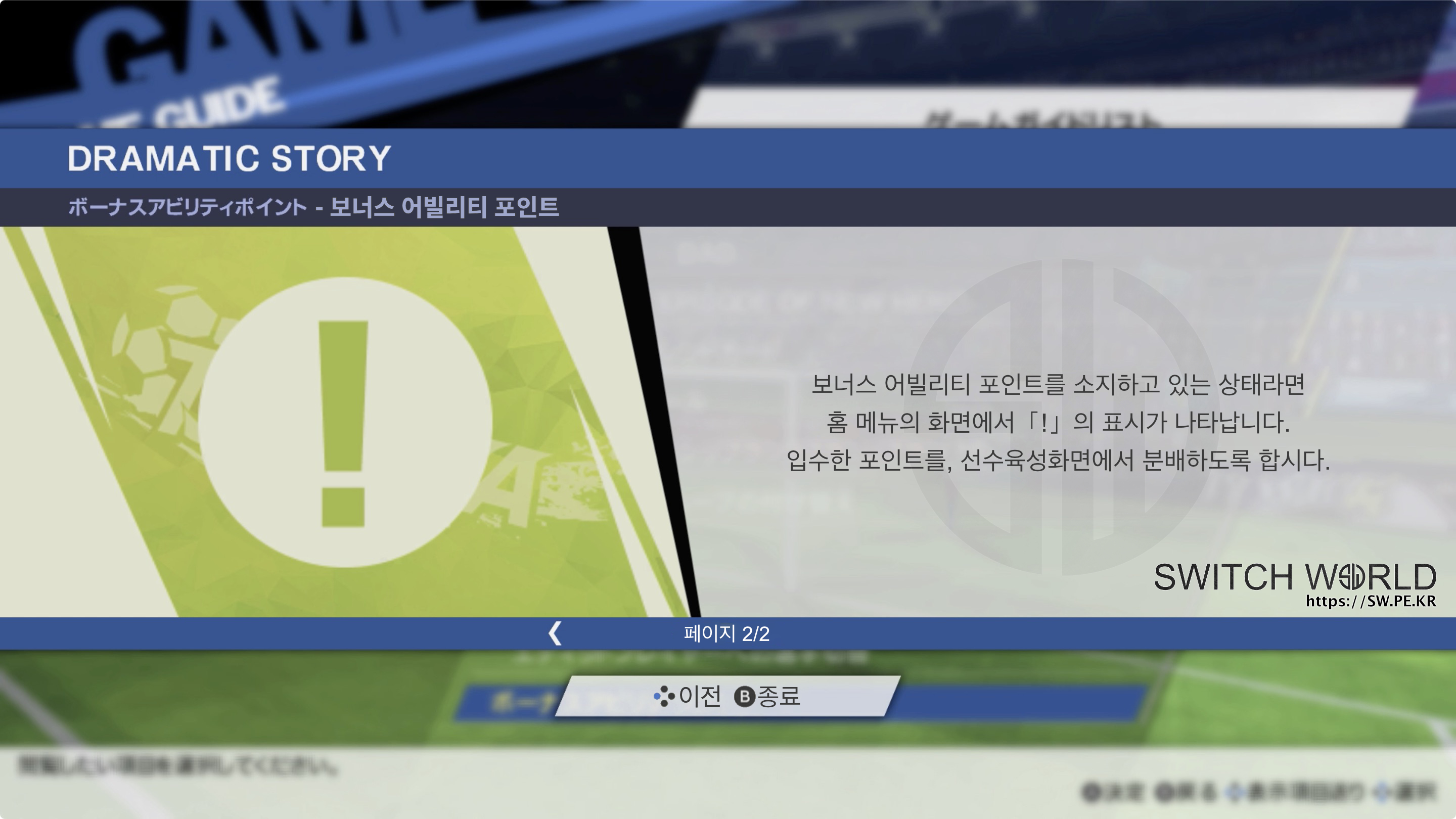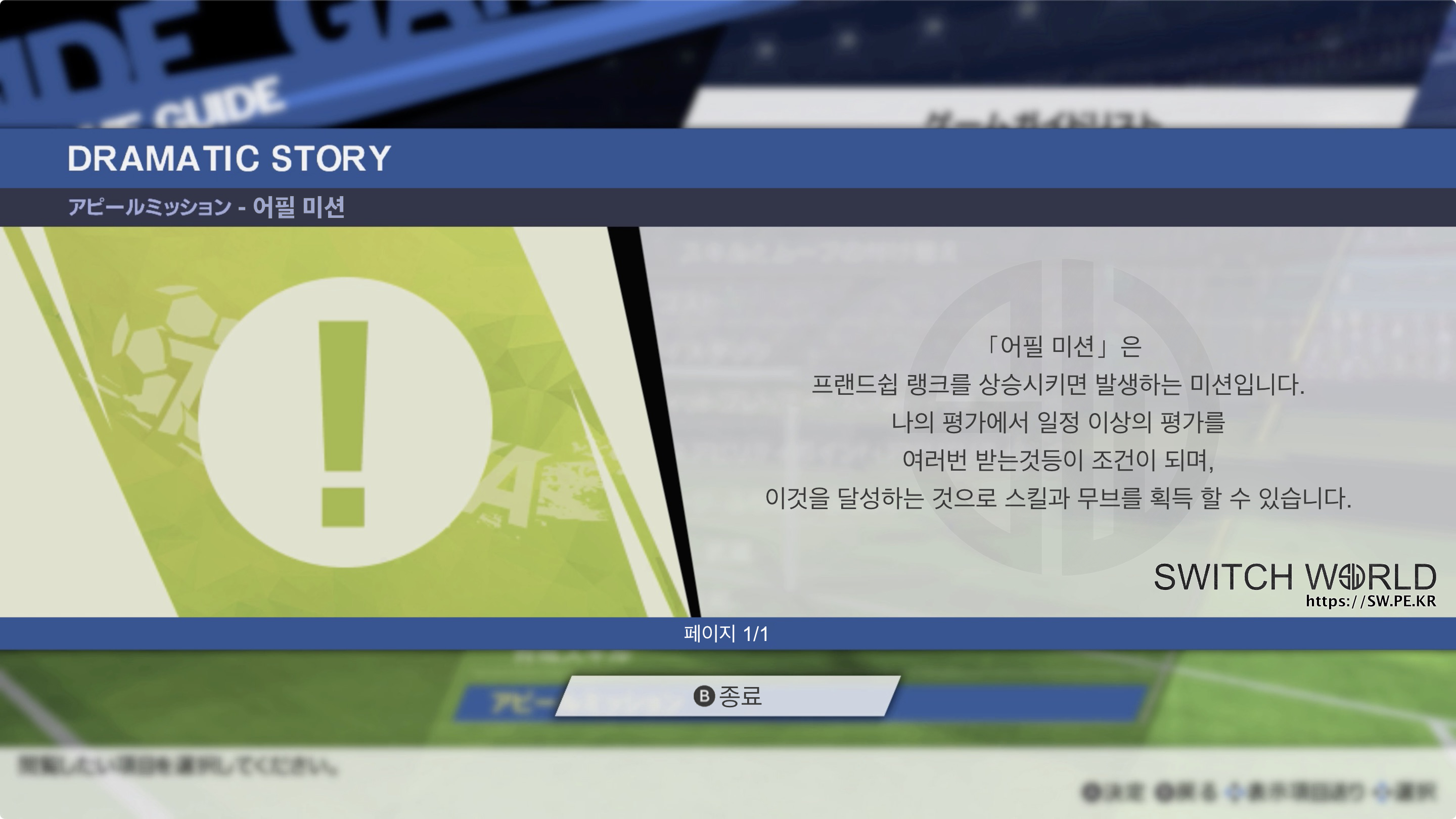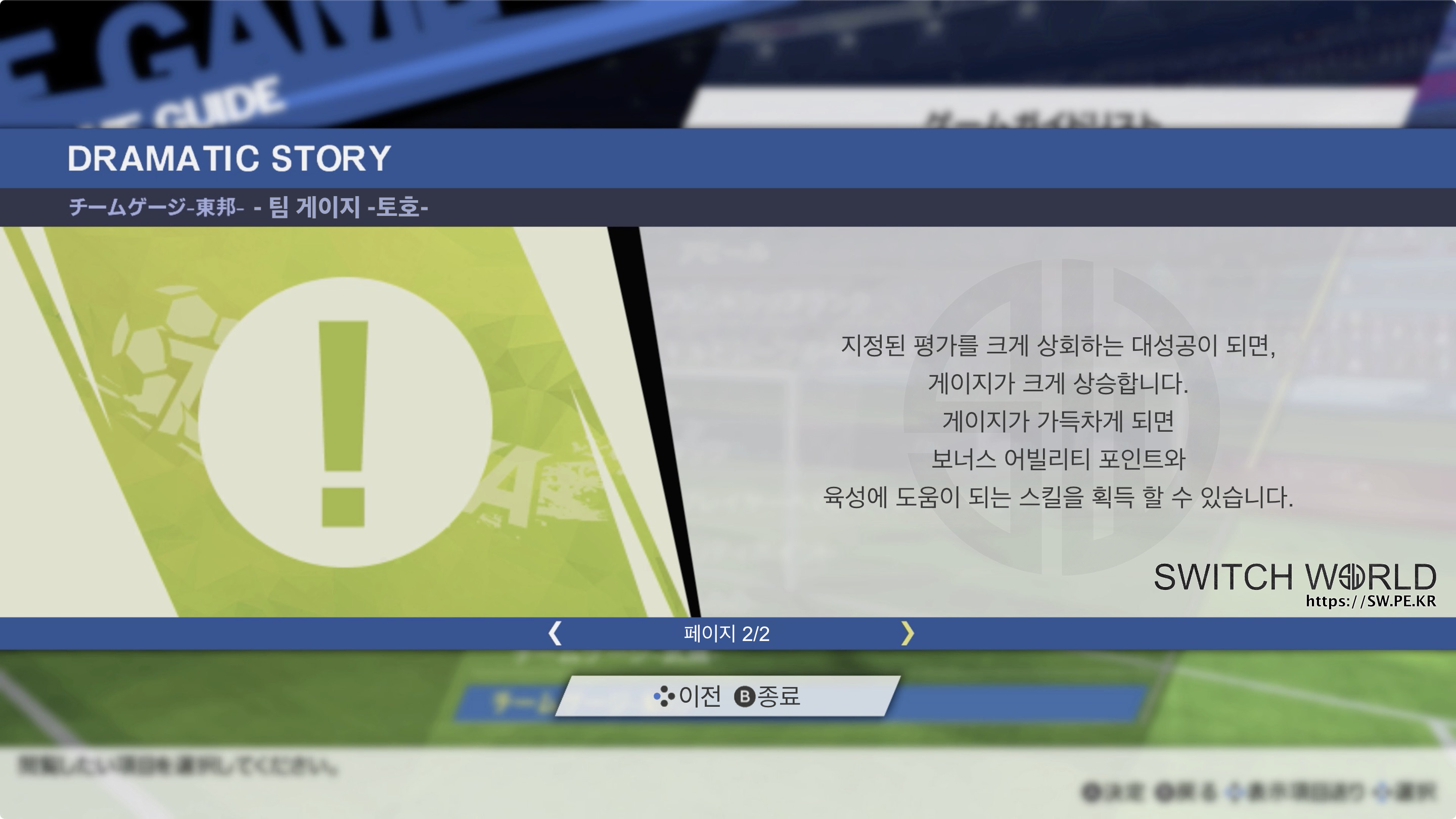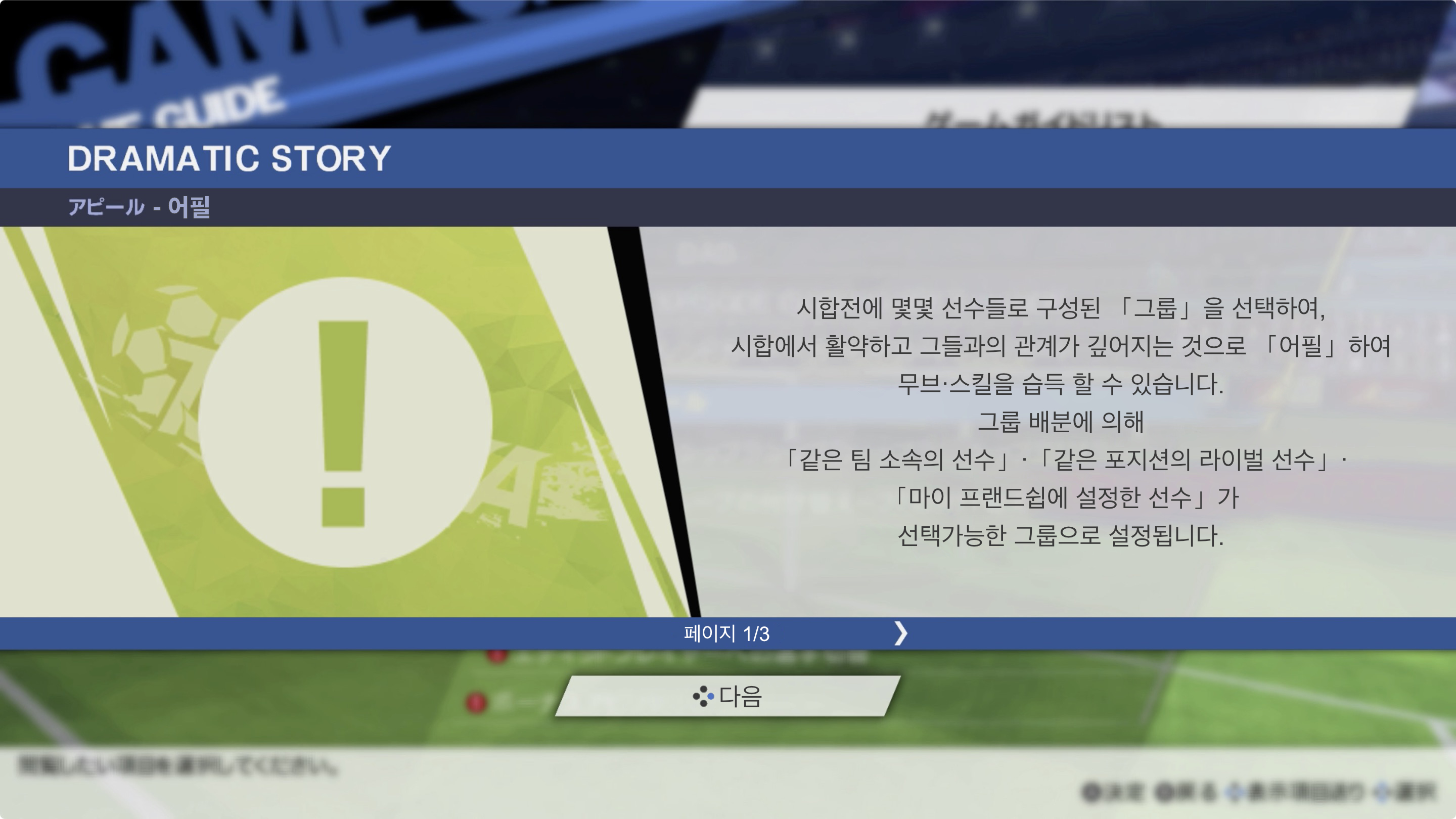 본 게시물은 '캡틴 츠바사 RISE OF NEW CHAMPIONS'의 COLLECTION > GAME GUICE 에서 볼 수 있는 설명을 나름대로 한글로 번역해본 페이지 입니다.