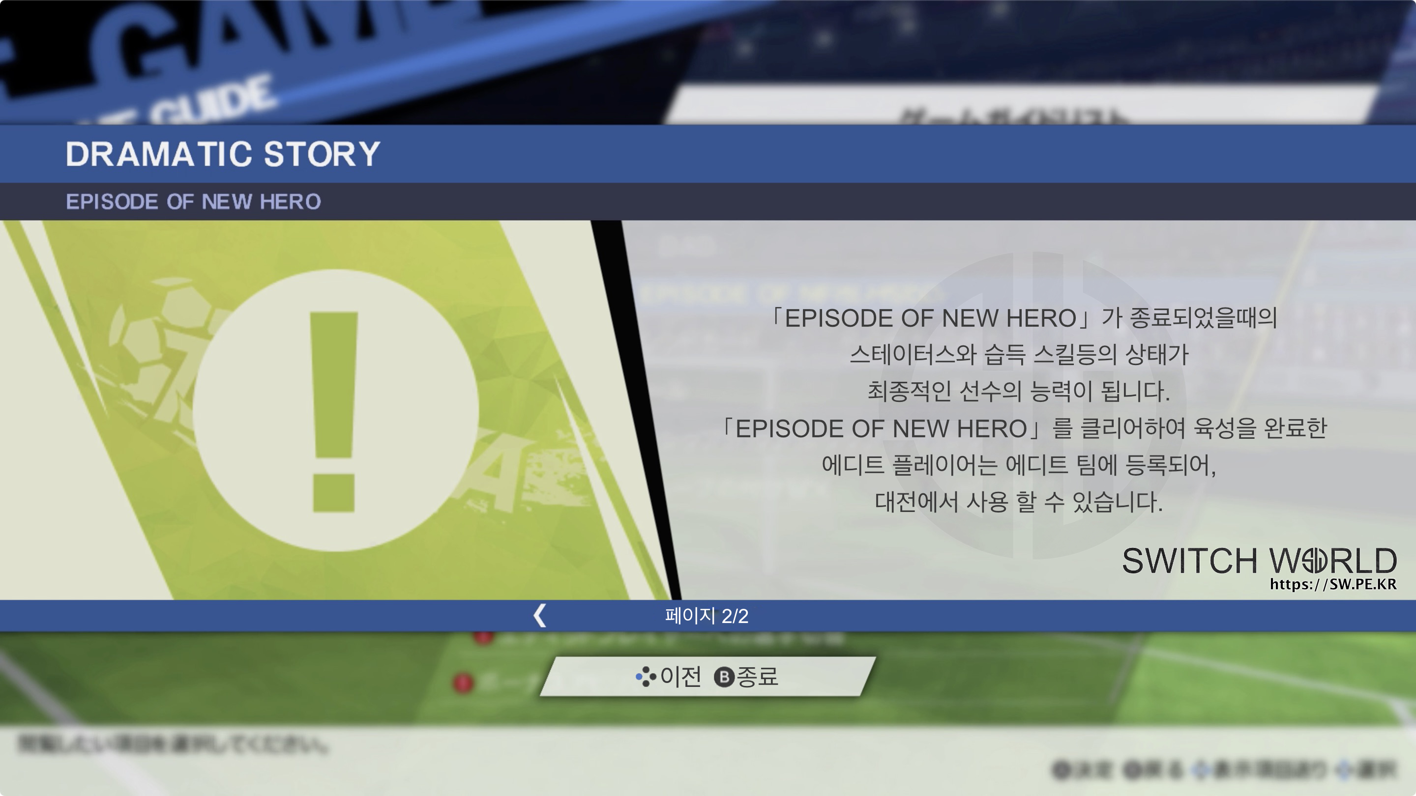 「EPISODE OF NEW HERO」는 오니지널 스토리를 통해서, 에디트 플레이어(당신)과 그 동료인 선수들의 육성을 할 수 있습니다.
