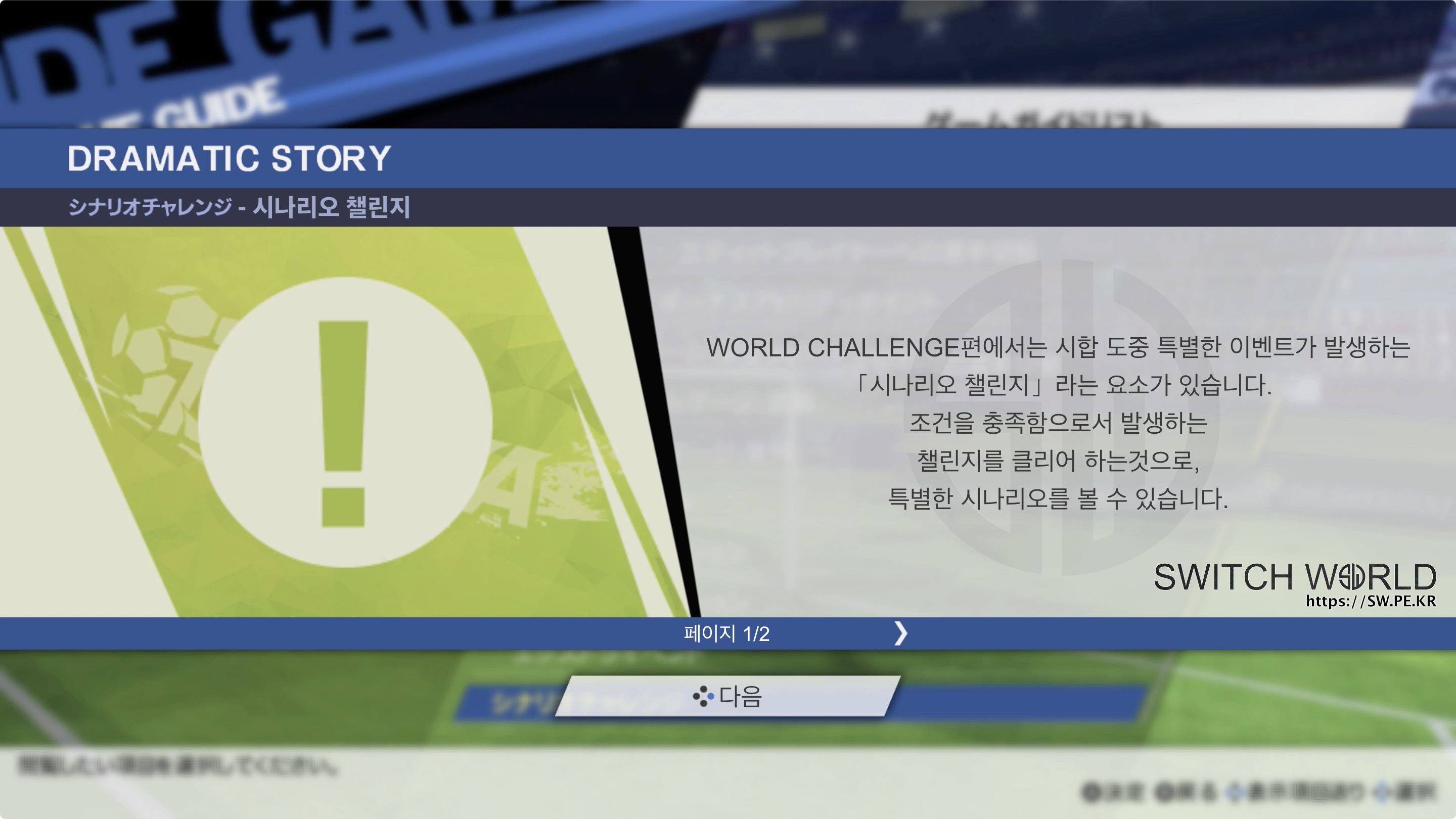 WORLD CHALLENGE편에서는 시합 도중 특별한 이벤트가 발생하는 「시나리오 챌린지」라는 요소가 있습니다.