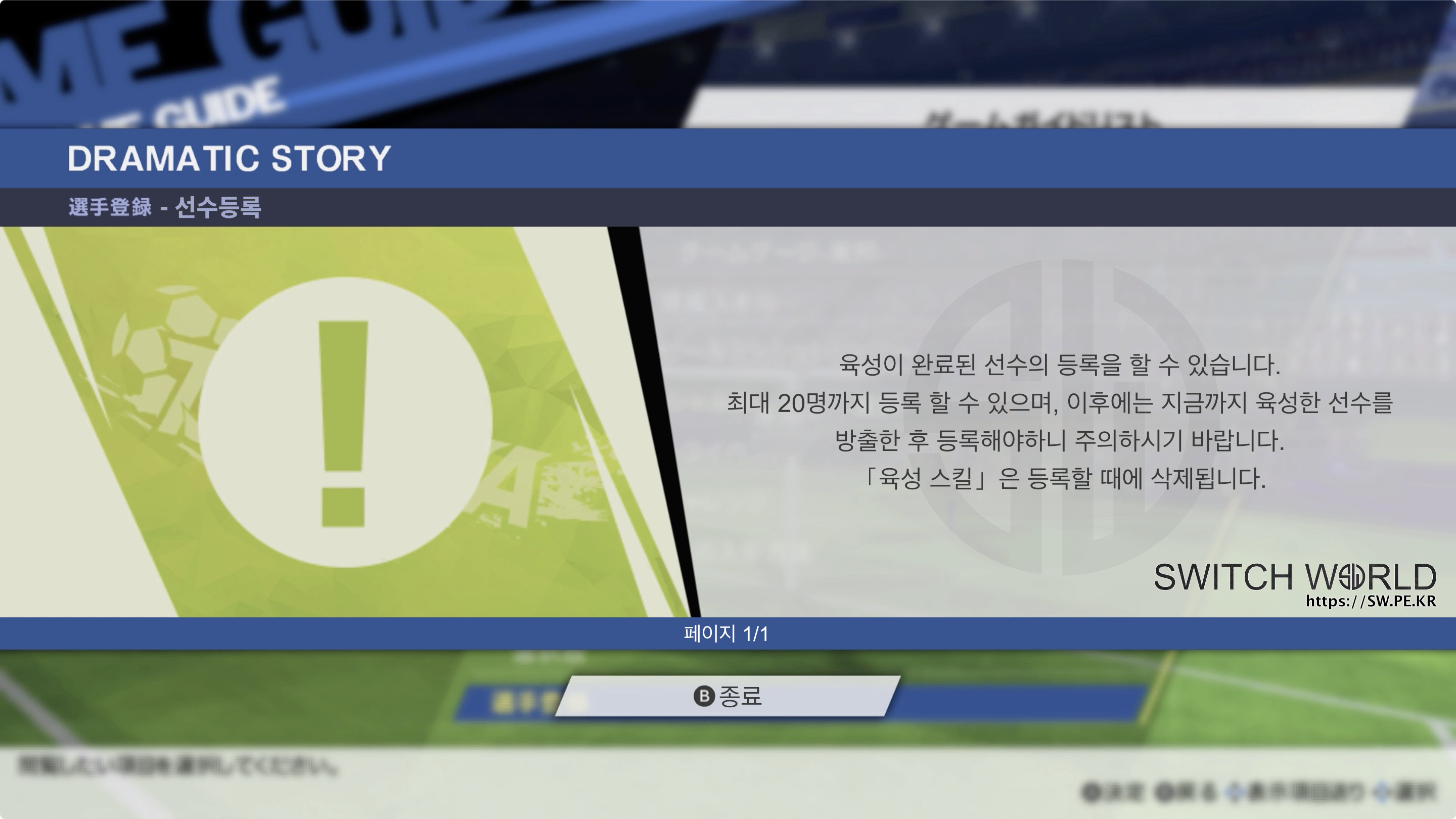 최대 20명까지 등록 할 수 있으며, 이후에는 지금까지 육성한 선수를 방출한 후 등록해야하니 주의하시기 바랍니다.